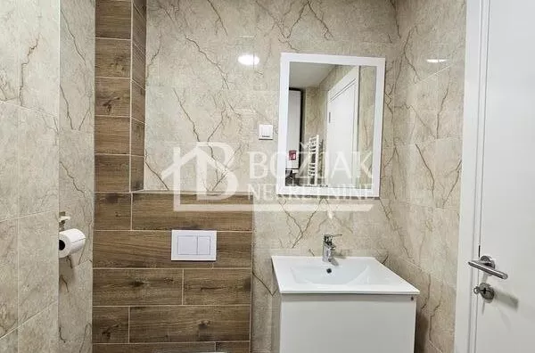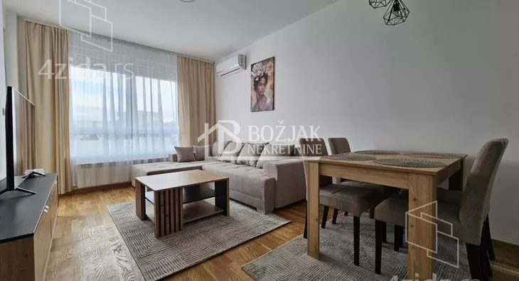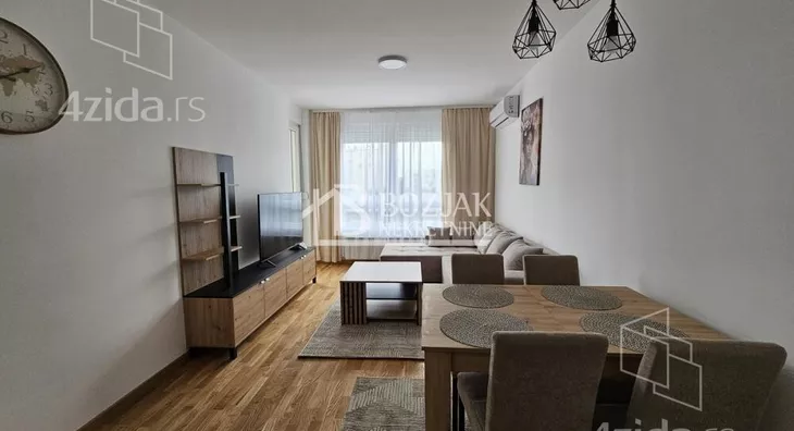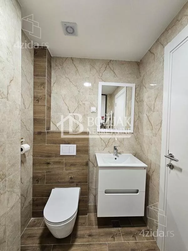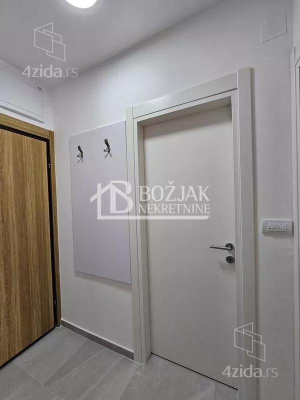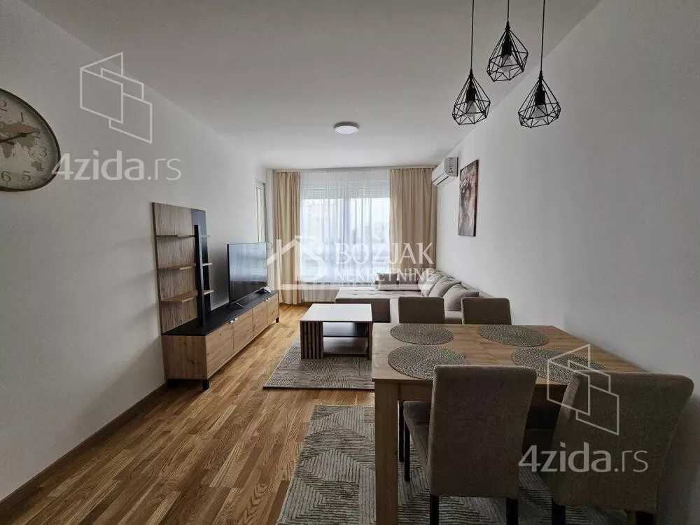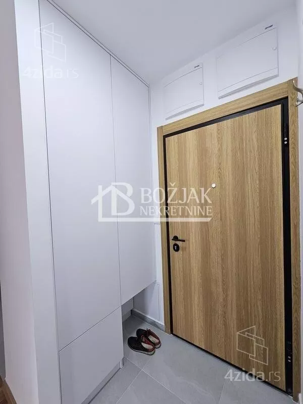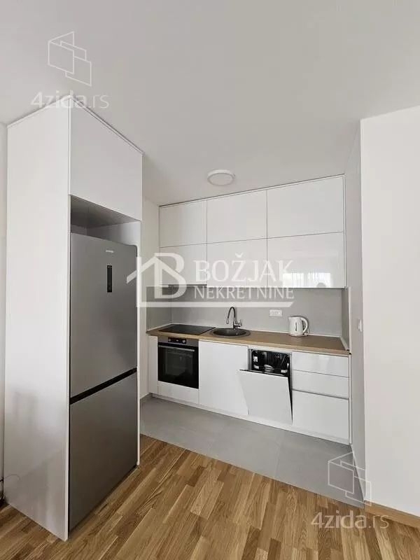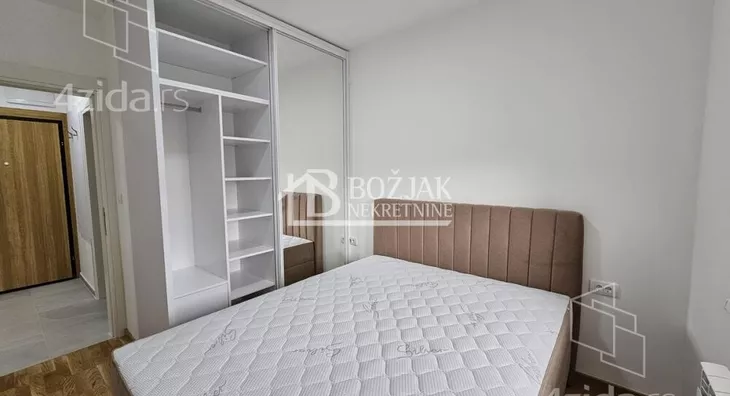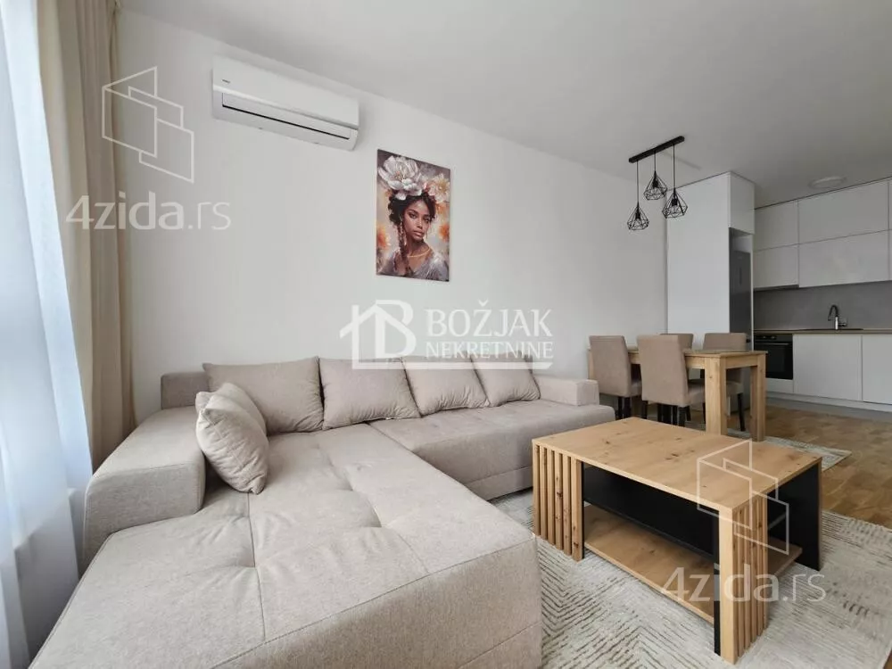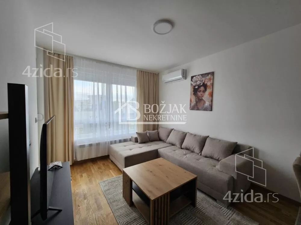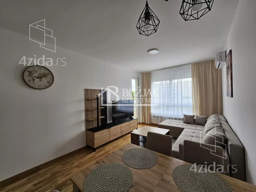 Izdaje se nov, jednoiposoban stan od 41m2, na drugom spratu u zgradi sa liftom i video-interfonom. Stan je u novosagrađenoj zgradi, u blizini Gomex Totala i sada se izdaje prvi put. Stan ima ulaz, kuhinju spojenu sa trpezarijom i dnevnom sobom iz koje se izlazi na terasu, spavaću sobu i kupatilo. Stan je opremljen novim nameštajem, kuhinja je rađena po meri sa ugradnom tehnikom (keramička ploča za kuvanje, rerna, aspirator i mašina za sudove), frižider sa zamrzivačem u nastavku je trpezarijski sto sa stolicama, ugaona garnitura, klub sto i tv komoda sa TV-om.U kupatilu je tuš kabina i mašina za pranje veša. U spavaćoj sobi je veliki američki plakar i bračni krevet. hodniku je plakar sa čivilukom. Grejanje je centralno, hlađenje je na klimu. Stan se izdaje na duži vremenski period (godinu dana). Depozit je u visini jedne zakupnine. Agencijska provizija je 50% prve zakupnine. Agencijska provizija 50%