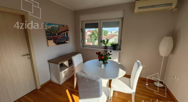 U mirnoj i uređenoj ulici naselja Lesnina izdaje se stan od 61 m² + terasa, u zgradi novije generacije u pogledu energetske efikasnosti - A+ klasa (2015. po završetku izgradnje prva koja je u Srbiji dobila energetski pasoš) sa svega pet stanova, ukupno dva sprata, sopstvenim ograđenim dvorištem i parking prostorom.