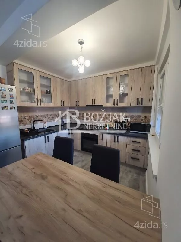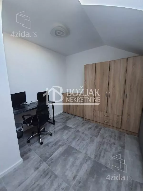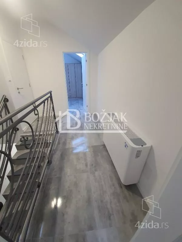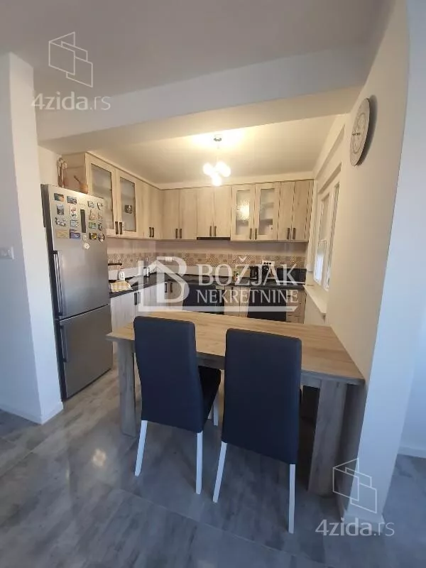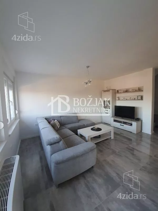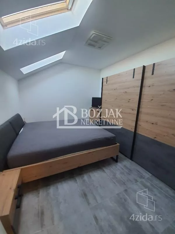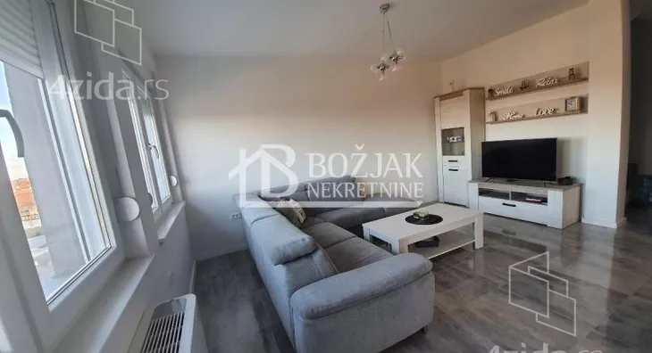 Izdaje se namešten trosoban stan - dupleks površine 74m2. Stan se nalazi na III spratu u zgradi sa liftom i pripada mu obeleženo parking mesto u dvorištu zgrade . Stan na I etaži ima ulaz, dnevnu sobu sa trpezarijom, kuhinju, terasu i kupatilo. Na II etaži ima dve sobe, toalet i hodnik. Stan je opremljen nameštajem i tehnikom, dva TV-a, mašina za prenje i sušenje veša, u kuhinji - šporet, frižider sa zamrzivačem, aspirator, aparat za kafu, aparat za smuti. Grejanje je podno, na toplotne pumpe, hlađenje je fenkojlovim. Prostorije imaju termostate, pa se grejanje može nezavisno regulisati. U stanu su sprovedeni optički kablovi. Zgarad ima interfone na ulazu, video-nadzor i kapija se otvara na daljinsko upravljenje. Dvorište je uređeno zelenom površinom i napravljeno je dečije igralište. Stan se izdaje na duži vremenski period i slobodan je od 01.11.2025.godine. Depozit je u visini jedne zakupnine. Agencijski troškovi su 50% prve zakupnine. Agencijska provizija 50%