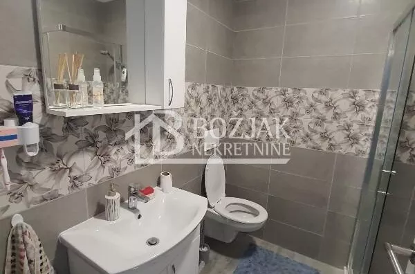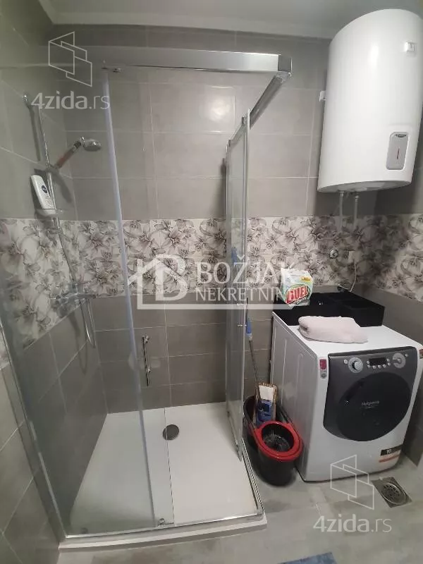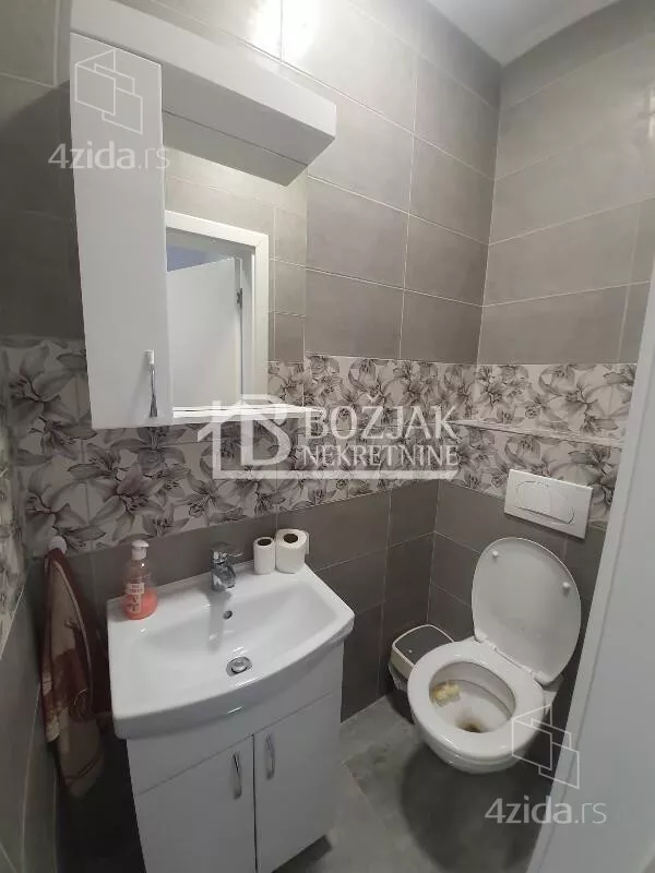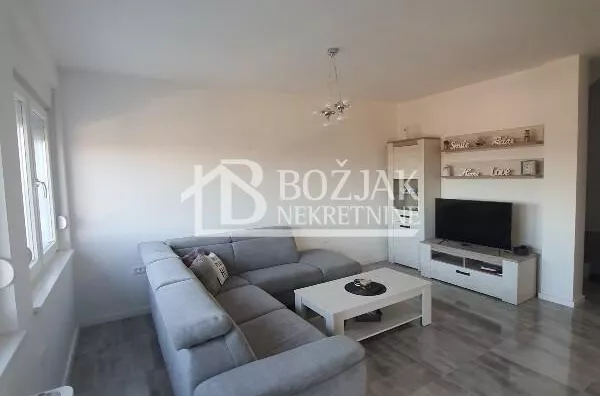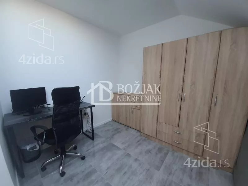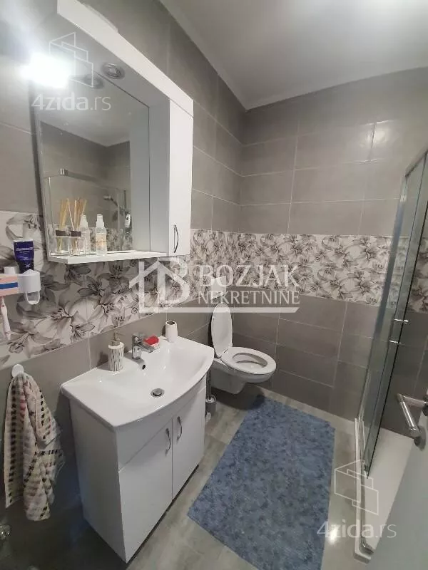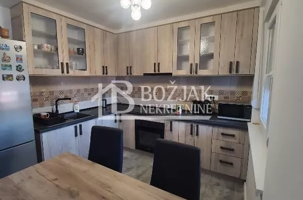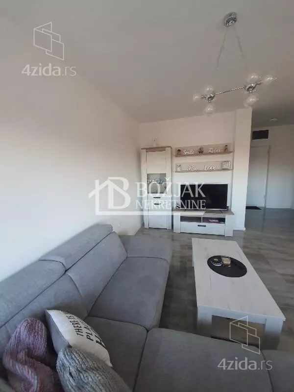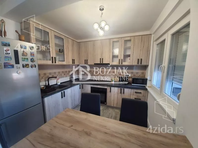 Izdaje se namešten trosoban stan - dupleks površine 74m2. Stan se nalazi na III spratu u zgradi sa liftom i pripada mu obeleženo parking mesto u dvorištu zgrade . Stan na I etaži ima ulaz, dnevnu sobu sa trpezarijom, kuhinju, terasu i kupatilo. Na II etaži ima dve sobe, toalet i hodnik. Stan je opremljen nameštajem i tehnikom, dva TV-a, mašina za prenje i sušenje veša, u kuhinji - šporet, frižider sa zamrzivačem, aspirator, aparat za kafu, aparat za smuti. Grejanje je podno, na toplotne pumpe, hlađenje je fenkojlovim. Prostorije imaju termostate, pa se grejanje može nezavisno regulisati. U stanu su sprovedeni optički kablovi. Zgarad ima interfone na ulazu, video-nadzor i kapija se otvara na daljinsko upravljenje. Dvorište je uređeno zelenom površinom i napravljeno je dečije igralište. Stan se izdaje na duži vremenski period i slobodan je od 01.11.2025.godine. Depozit je u visini jedne zakupnine. Agencijski troškovi su 50% prve zakupnine. Agencijska provizija 50%