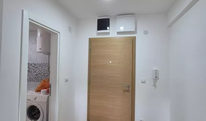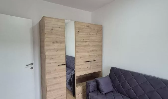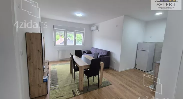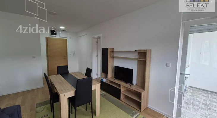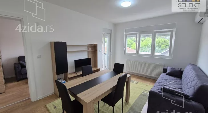 - Opremljenost: Namešteno - interfon, TV, klima, veš mašina, frižider, rerna, ležaj, plakar, kanalizacija