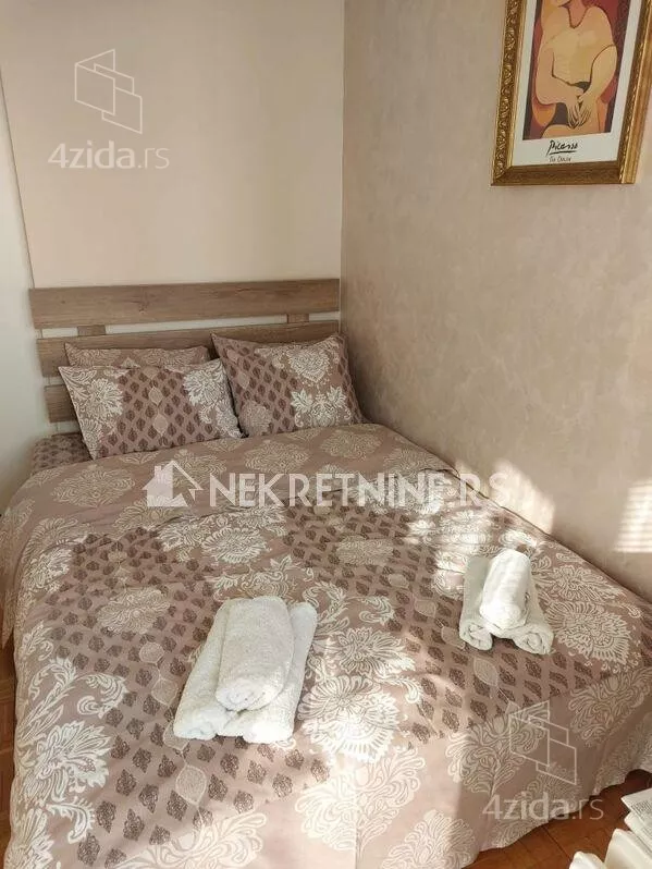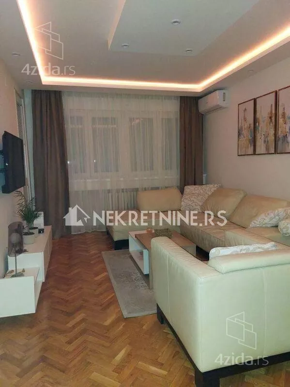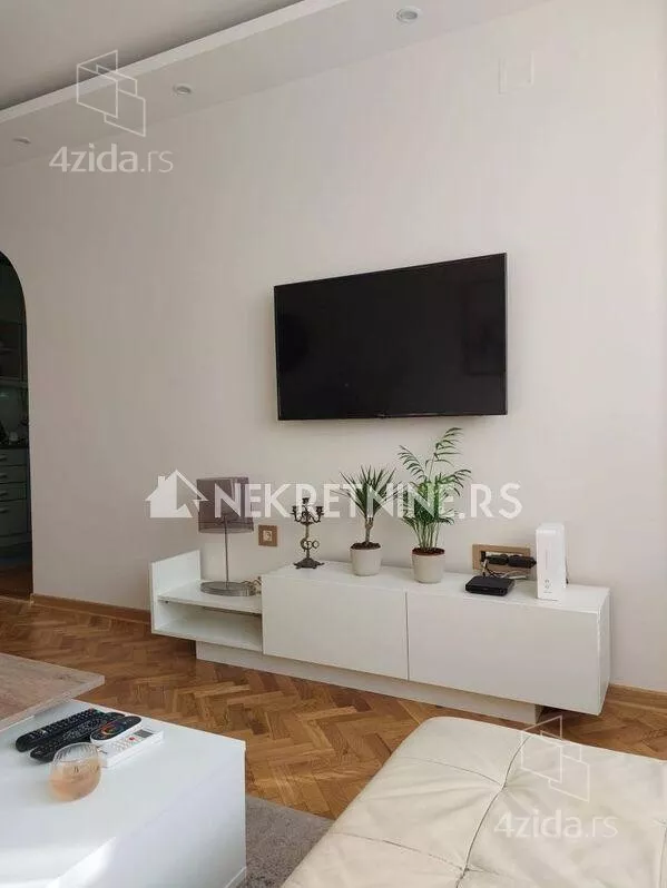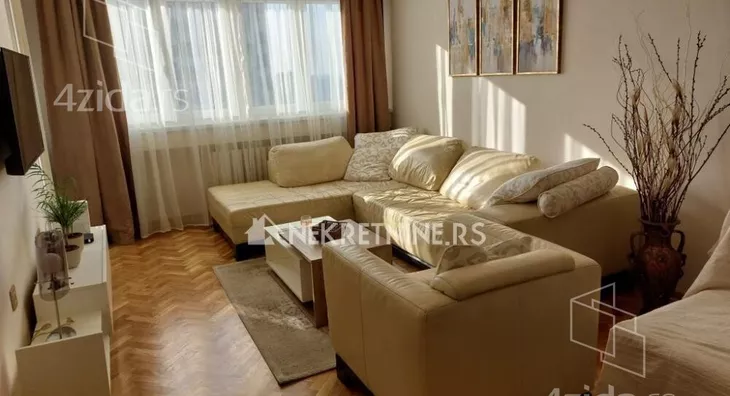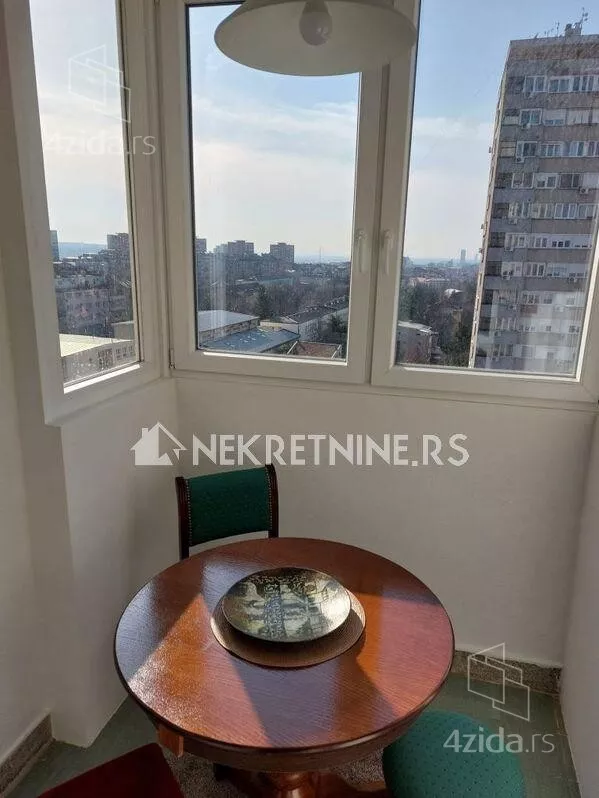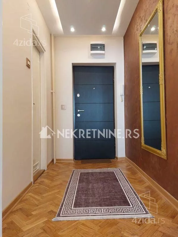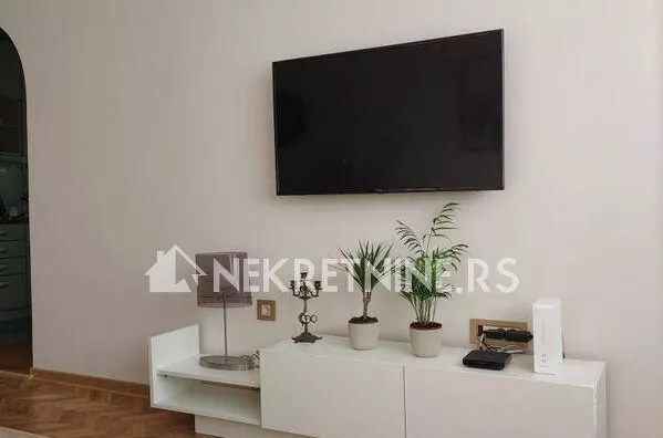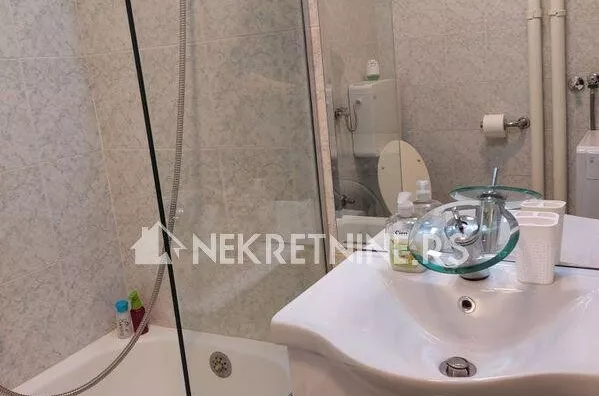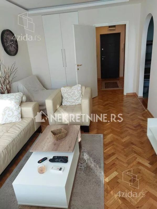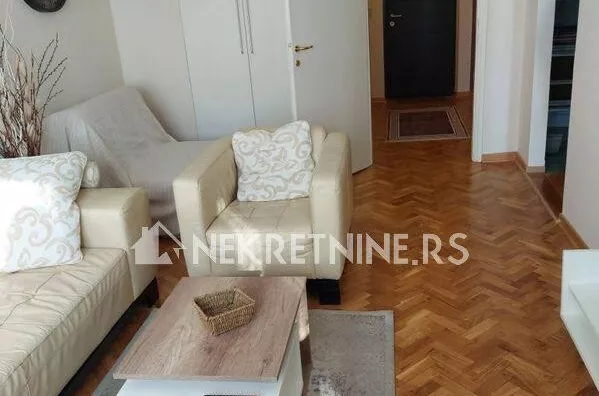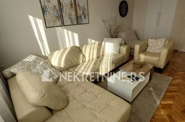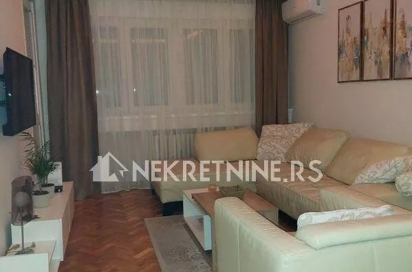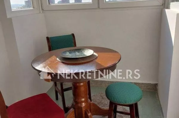 Stan se sastoji od dnevne sobe, kuhinje, trpezarije, spavace sobe, predsoblja i kupatila. Potpuno je opremljen i nedavno renoviran. Grejanje je centralno. Ima klima uredjaj. Zgrada ima dva lifta i veoma lepo odrzavana. Agencijska provizija 50% od prve zakupnine.