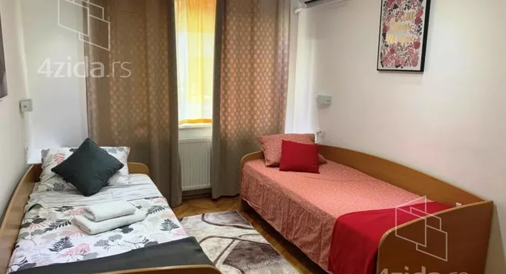 - Opremljenost: Namešteno - internet, TV, klima, veš mašina, frižider, rerna, ležaj, plakar