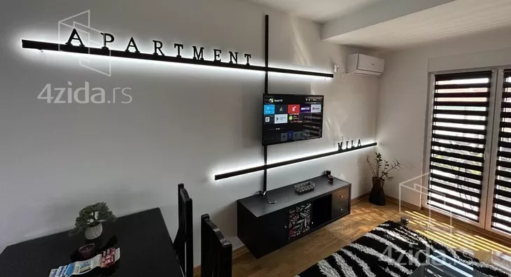- Opremljenost: Namešteno - internet, TV, klima, veš mašina, kuhinjski elementi, sudo mašina, frižider, zamrzivač, mikrotalasna rerna, šporet, ležaj, plakar, ugradni plakar, kancelarijski nameštaj