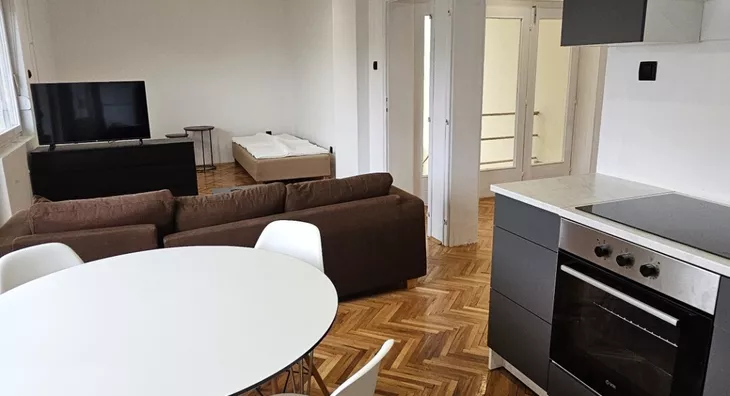 - Opremljenost: Namešteno - TV, klima, veš mašina, kuhinjski elementi, frižider, šporet, rerna, ležaj