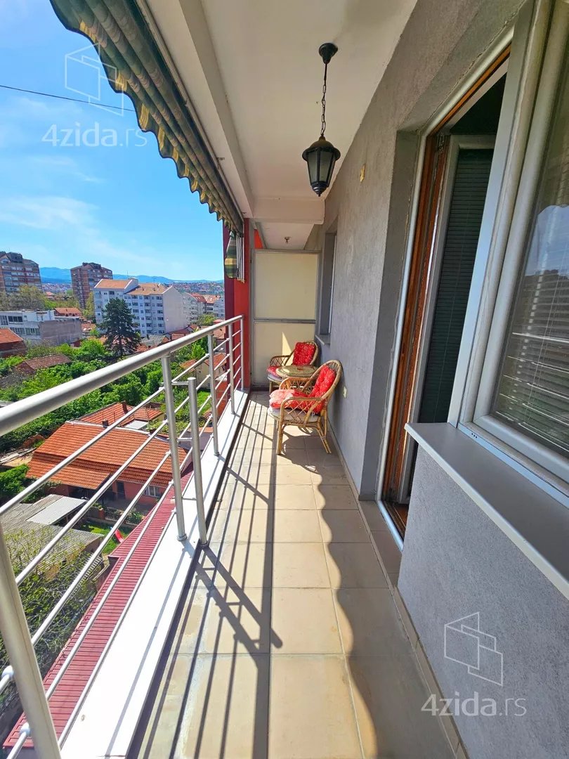 - Opremljenost: Namešteno - internet, TV, klima, veš mašina, kuhinjski elementi, frižider, zamrzivač, šporet, rerna, ležaj, plakar, ugradni plakar, kancelarijski nameštaj