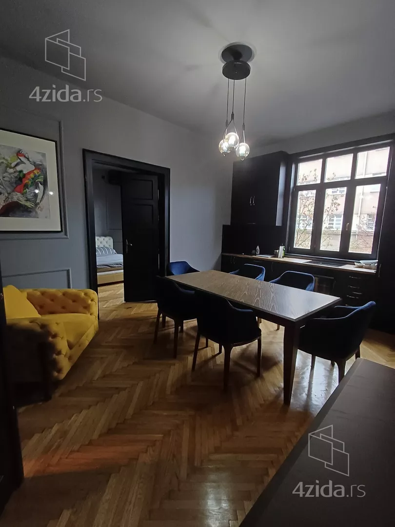 Stan je u zgradi starije gradnje, izuzetno očuvane, u autentičnom duhu luksuznih kuća građenih pre rata sa standardima koji obezbeđuju visok kvalitet stanovanja i boravka kao i lepotu koja prija svakome bez obzira na ukus i kriterijum. Može se reći da je privilegija biti u mogućnosti da iznajmite i živite u ovakvom prostoru.