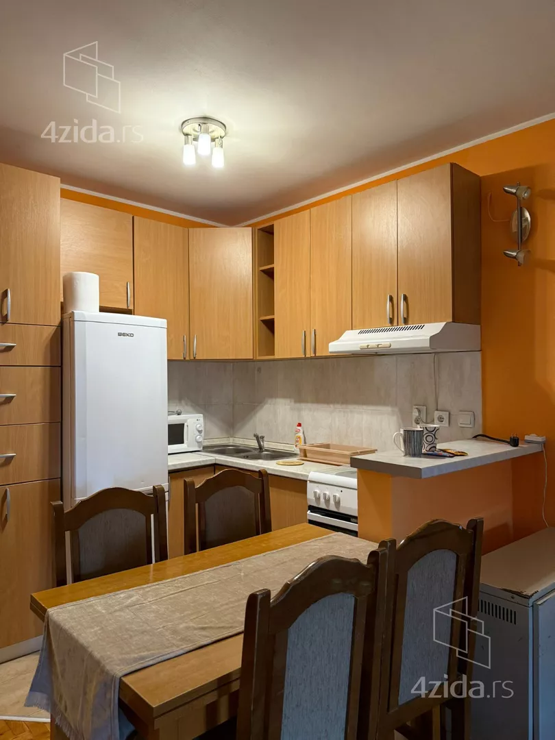 - Opremljenost: Namešteno - internet, TV, klima, veš mašina, kuhinjski elementi, frižider, mikrotalasna rerna, šporet, rerna, ležaj, plakar, ugradni plakar