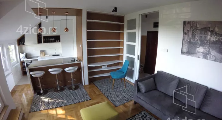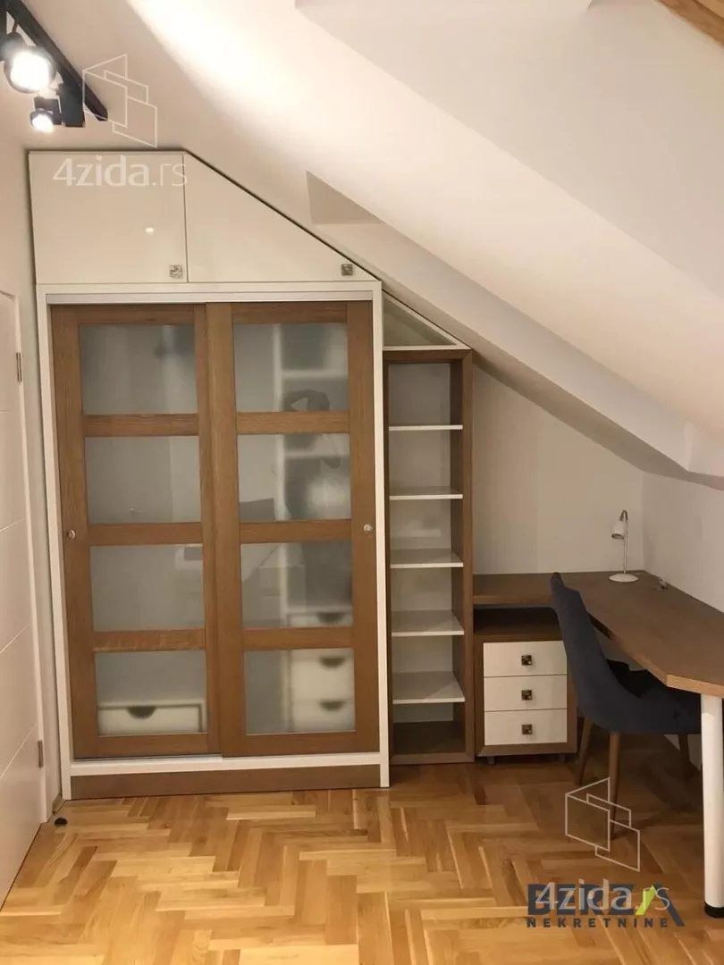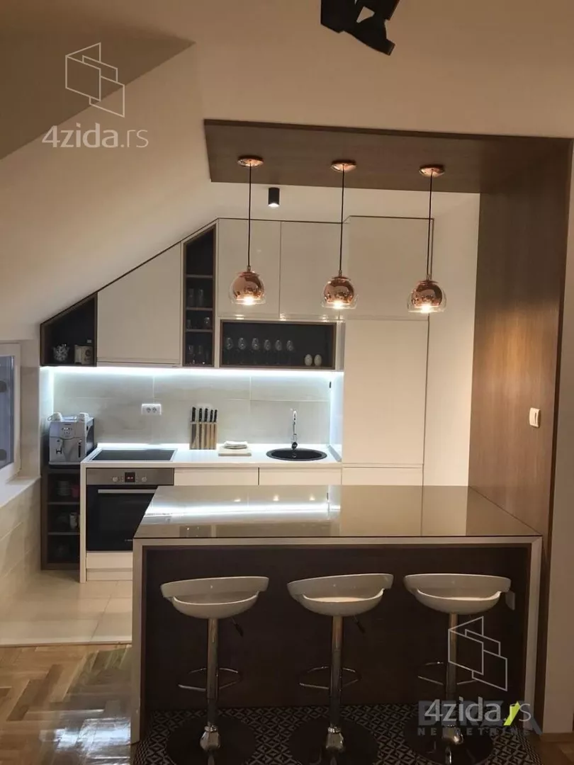 Izdaje se lep, moderan, kompletno opremljen dvoetažni trosoban stan na 3. spratu nove zgrade sa liftom na lepoj lokaciji na Novoj Detelinari. Stan je opremljen sa kvalitetnim nameštajem i tehnikom: frižider, frižider za vino, sudo mašina, keramička ploča sa rernom, espresso aparat i kompletan kuhinjski pribor, kao i mašina za pranje i sušenje veša.