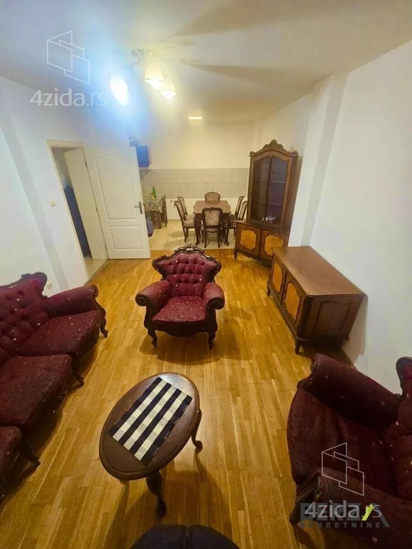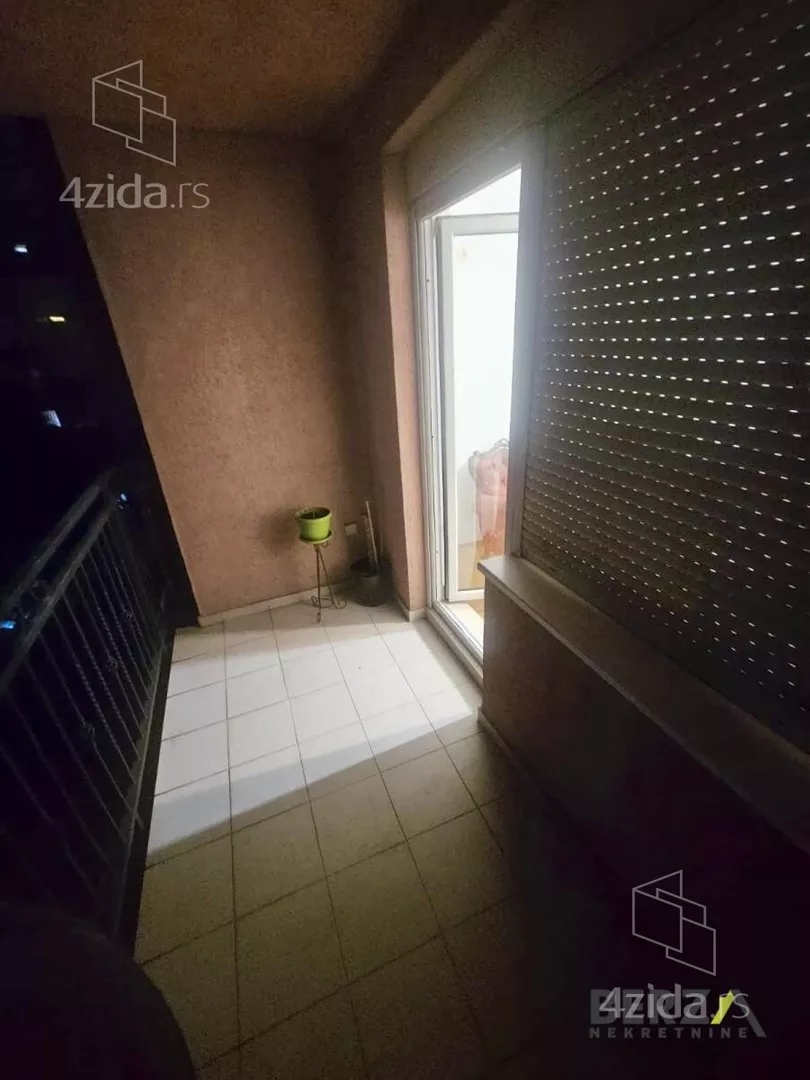 Izdaje se polunamešten, trosoban stan na četvrtom spratu zgrade sa liftom. Poseduje opremljenu kuhinju i kupatilo, kao i deo bele tehnike. Stan se sastoji od prostranog dnevnog boravka sa kuhinjom i trpezarijom, dve odvojene spavaće sobe i terase. Potreban depozit u visini kirije.