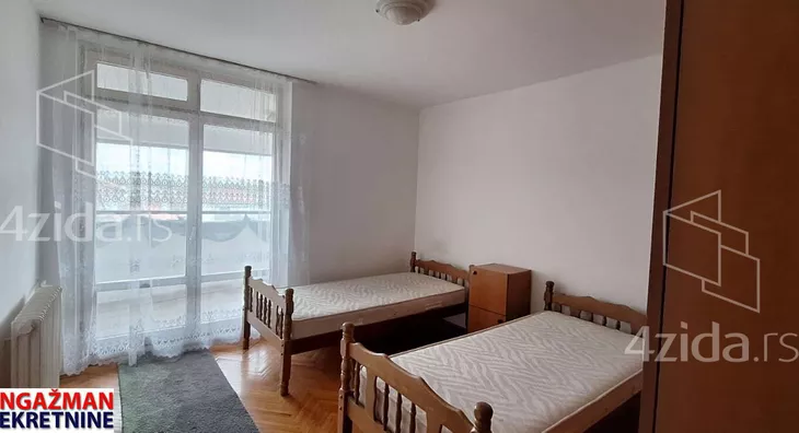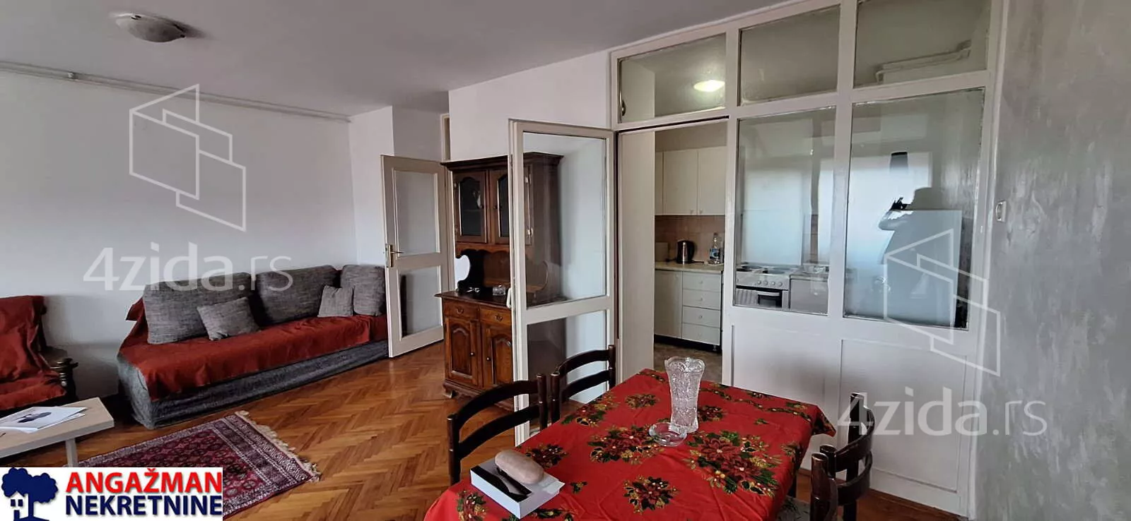Komforan i svetao dvosoban stan u tihom okruženju. Dvostrano orijentisan, sa pogledom ka gradu i Avali. Namešten i kompletno opremljen (nov frižider, mašina za veš, sudopera). PROSTORIJE: predsoblje, veliki dnevni boravak sa trpezarijom i izlaskom na zastakljenju lođu, kuhinja, prostrana spavaća soba sa lođom, kupatilo. Dosta mesta za odlaganje. Veoma uredan i održavan ulaz. Dovoljno prostora za parkiranje oko zgrade. U neposrednoj blizini osnovne škole, vratića, prodavnica. Linije 15, 45 i 78 na dva minuta hoda od zgrade, železnička stanica na 5 minuta. Na par stotina metara od izlaska na autoput. Agencijska provizija polovina od prve mesečne zakupnine. ,