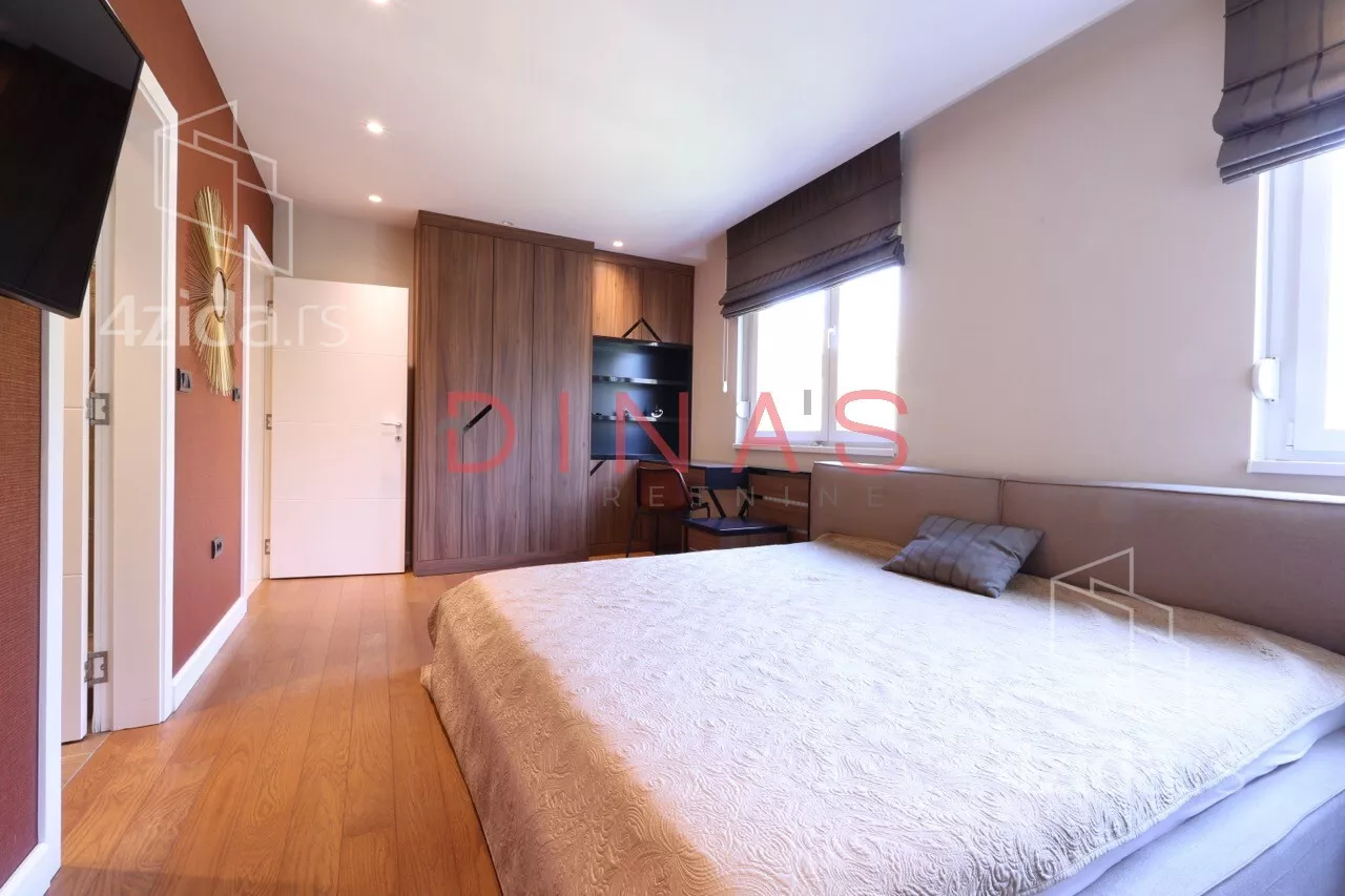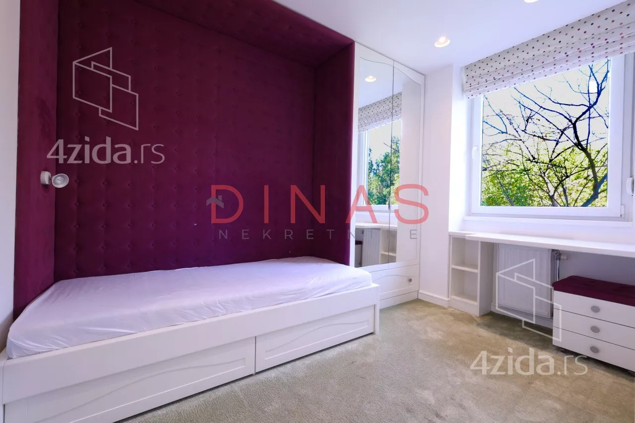 Kompletno opremljen četvorosoban stan u novijoj zgradi. Poseduje i parking mesto u suterenu zgrade - mogućnost iznajmljivanja po ceni od 100 EUR. Veliki dnevni boravak sa kuhinjom, trpezarijom i terasom. Dve dečije sobe, kupatilo, master spavaća soba sa odvojenim garderoberom, kupatilom i vešernicom. Sva oprema i nameštaj u stanu vrhunskog kvaliteta. U neposrednoj blizini centra, Spensa, Promenade, fakulteta i dr.. Dozvoljeni mali ljubimci. Useljiv 15.09.. Obavezan depozit u iznosu jedne mesečne zakupnine. Agencijska naknada 50% od jedne mesečne zakupnine. Više informacija na tel: 063... (prikaži broj telefona)