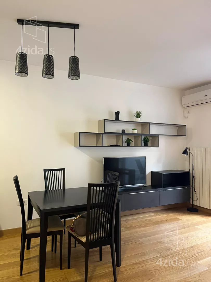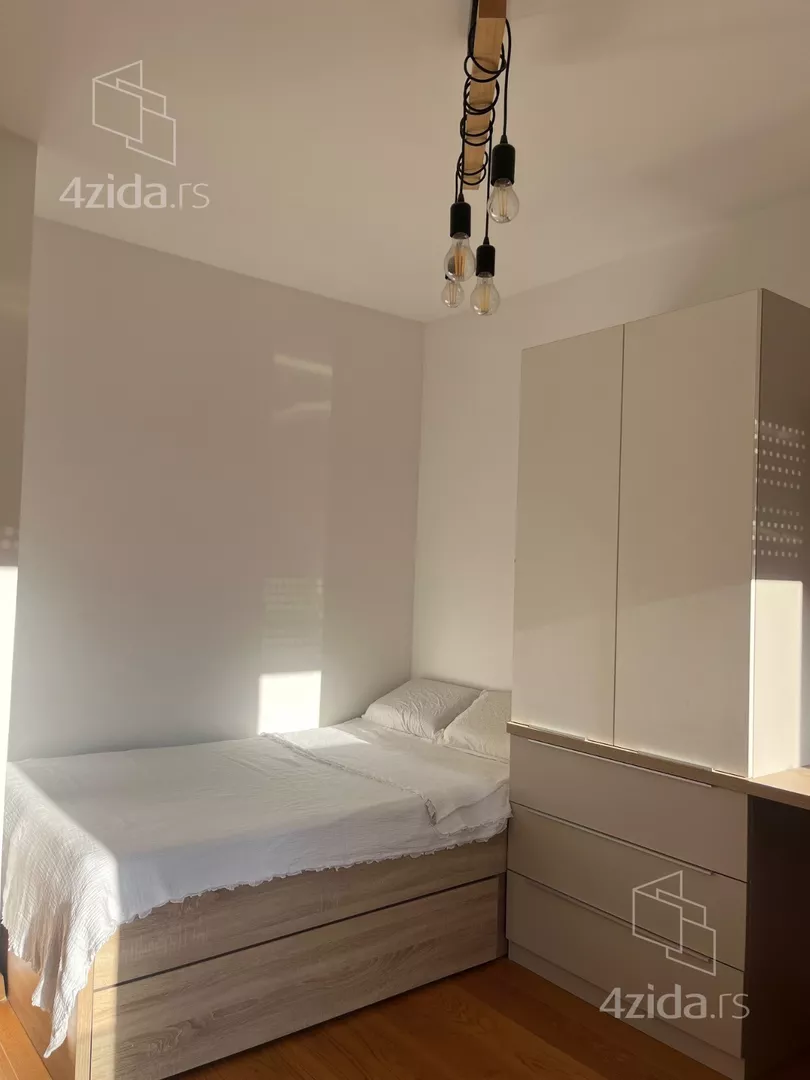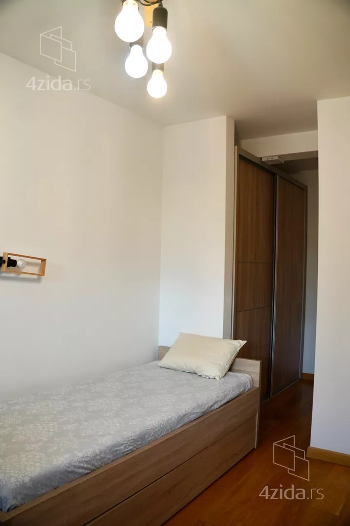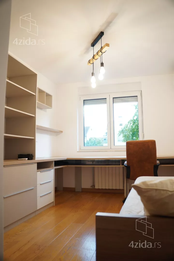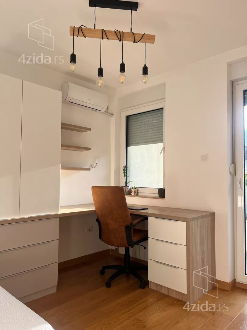 - Opremljenost: Namešteno - TV, klima, veš mašina, kuhinjski elementi, frižider, zamrzivač, šporet, rerna, ležaj, plakar, ugradni plakar, kancelarijski nameštaj
