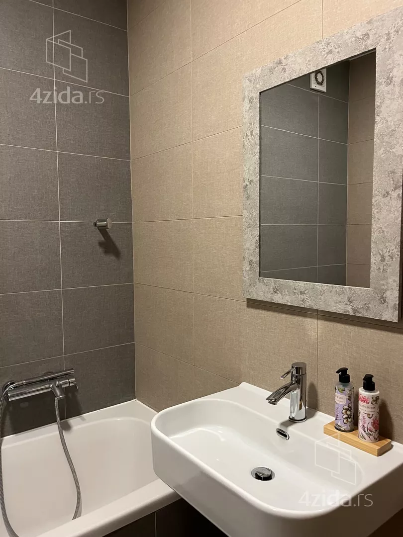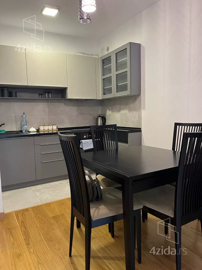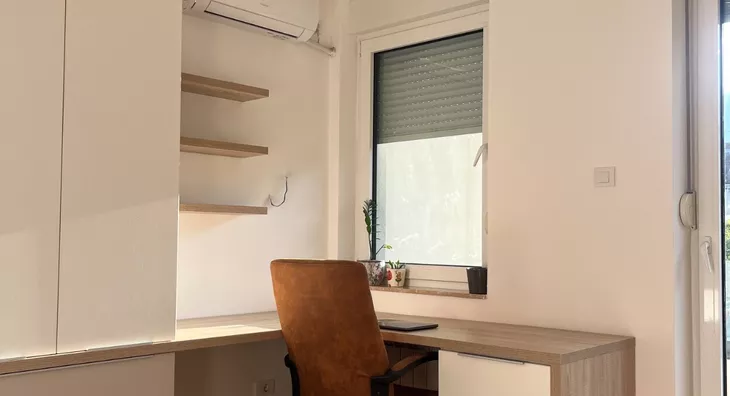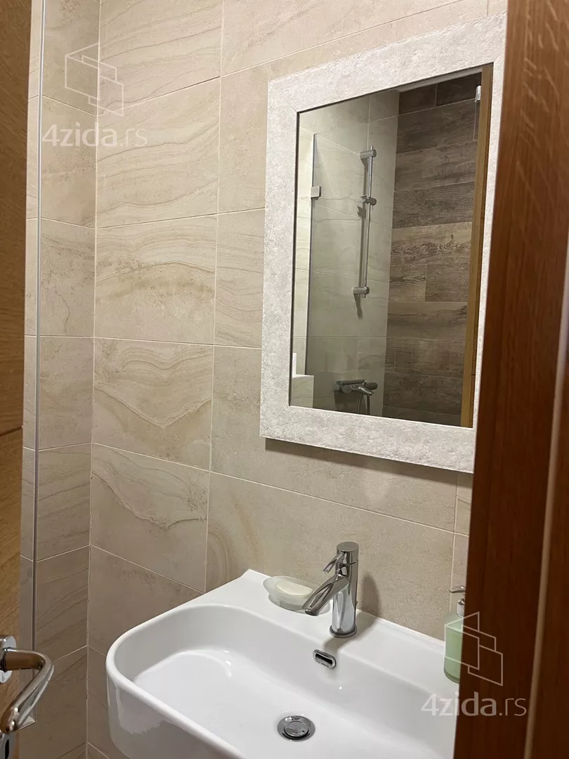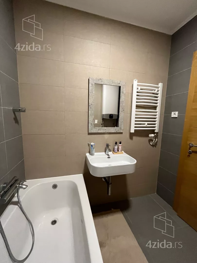 - Opremljenost: Namešteno - TV, klima, veš mašina, kuhinjski elementi, frižider, zamrzivač, šporet, rerna, ležaj, plakar, ugradni plakar, kancelarijski nameštaj