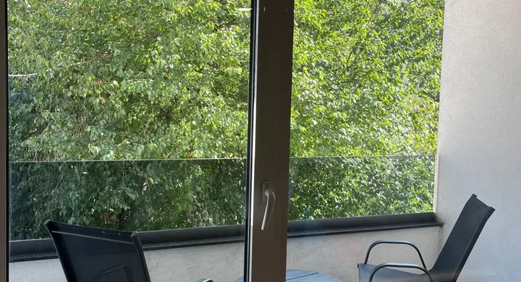 Stan ima dvostranu orijentaciju – jedna terasa gleda na mirno dvorište, druga na ulicu.U okviru dvorišta zgrade obezbeđeno je i privatno parking mesto.