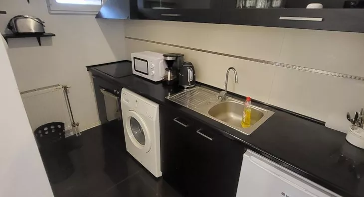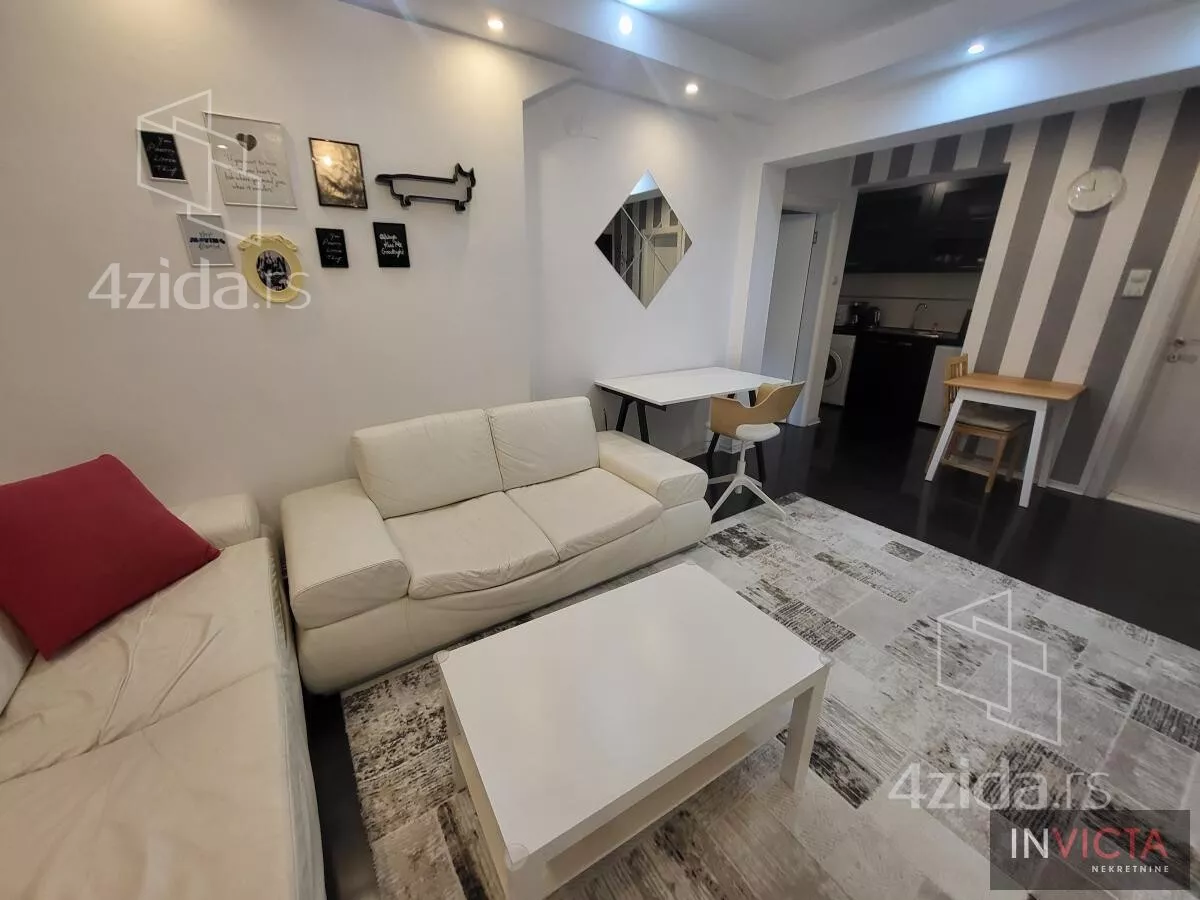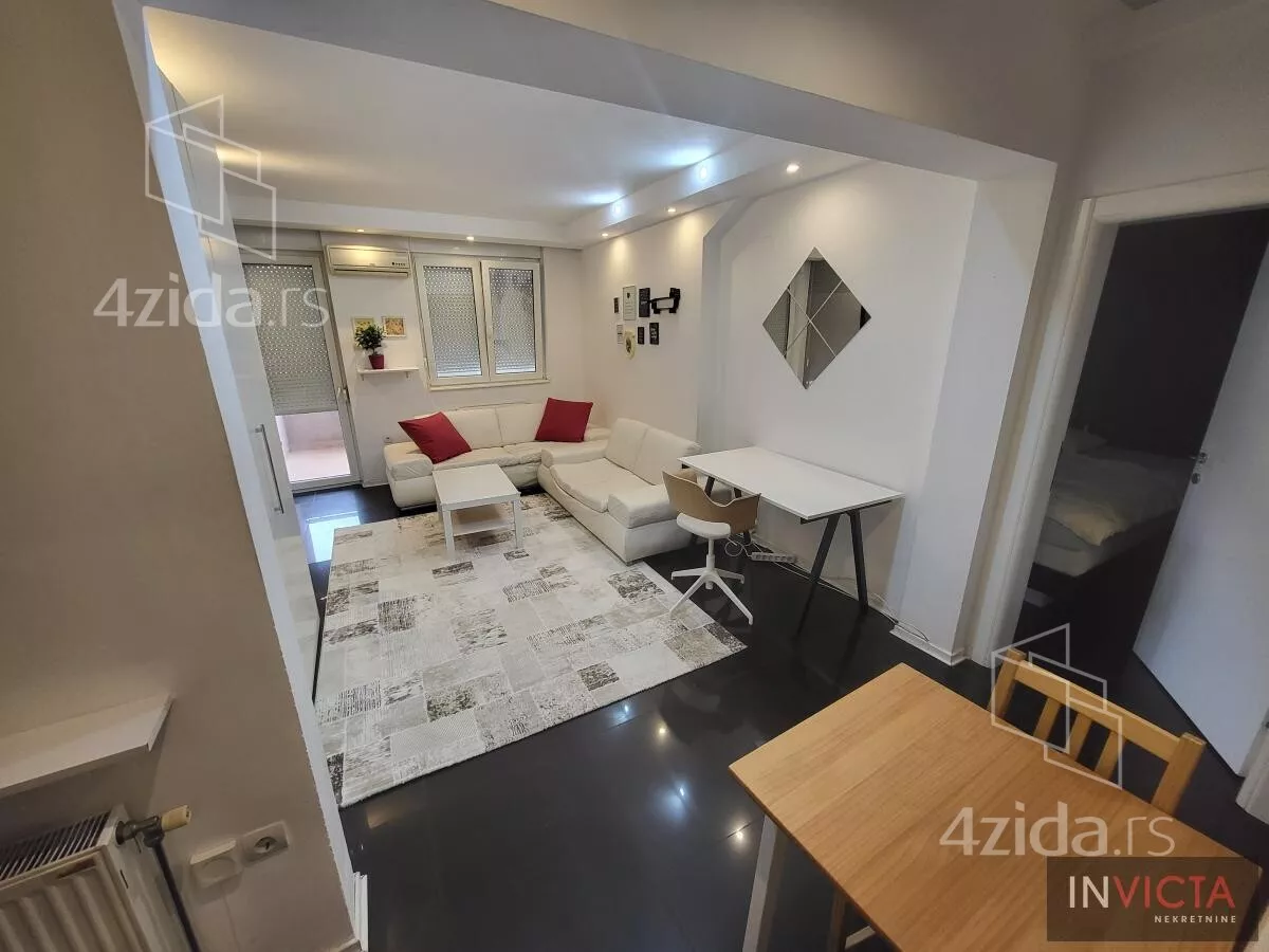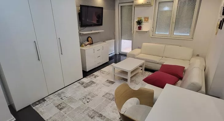 - Opremljenost: Namešteno - interfon, TV, klima, veš mašina, sudo mašina, frižider, rerna, ležaj, plakar, kanalizacija