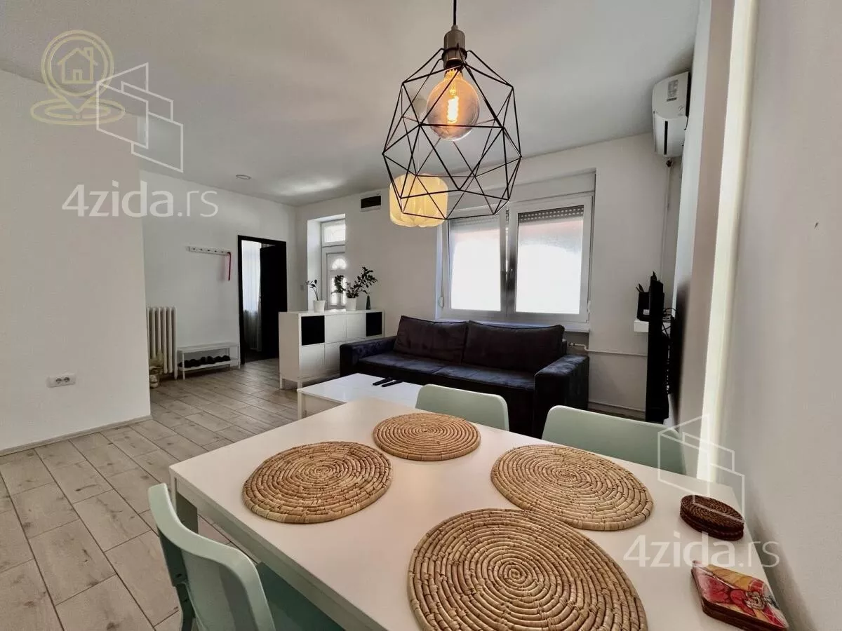 - Opremljenost: Namešteno - internet, interfon, TV, klima, veš mašina, sudo mašina, frižider, rerna, ležaj, plakar