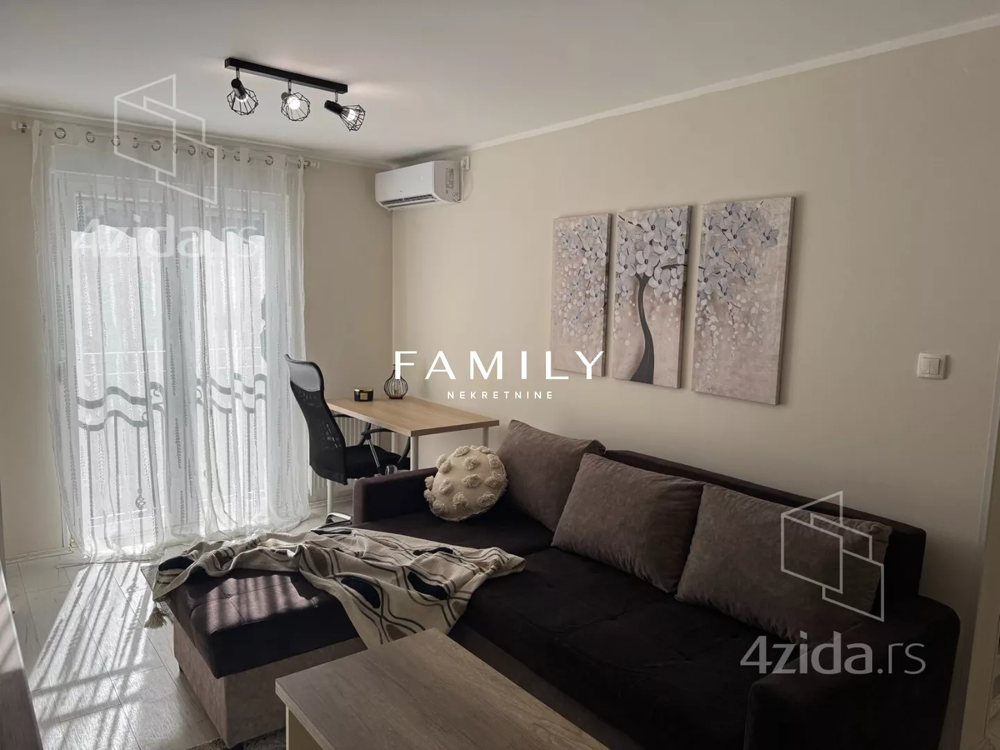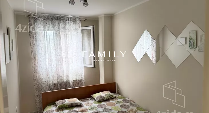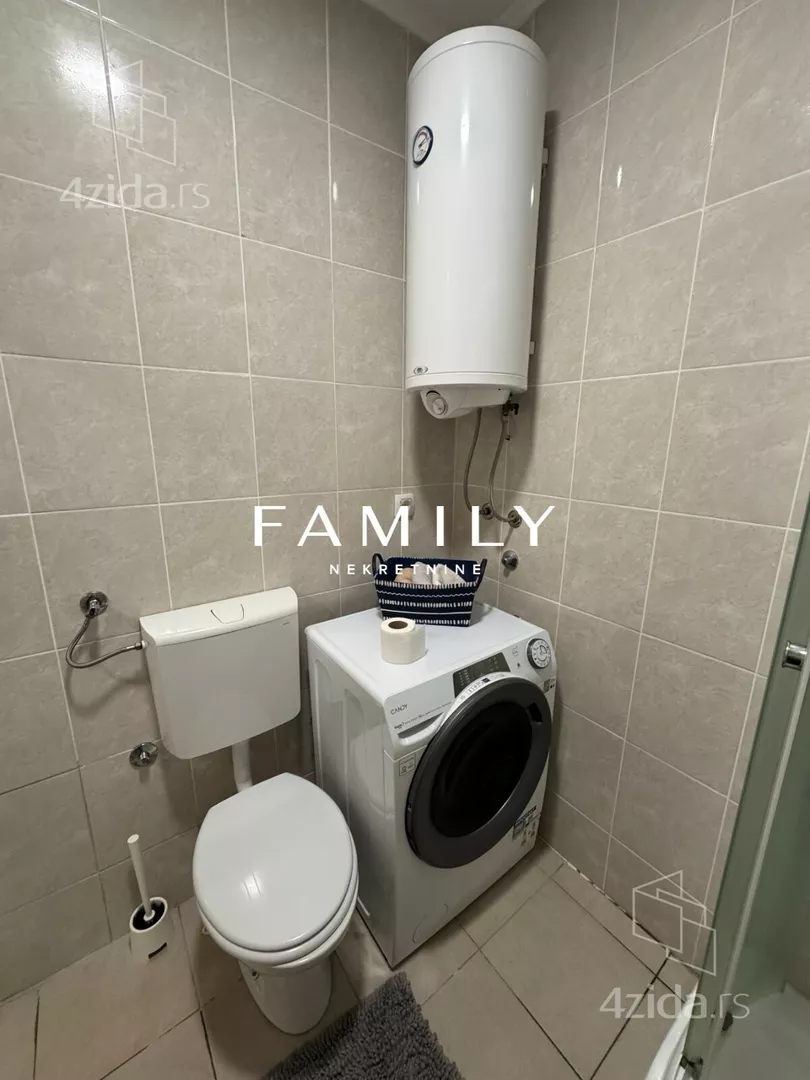- Opremljenost: Namešteno - internet, TV, klima, veš mašina, kuhinjski elementi, frižider, zamrzivač, mikrotalasna rerna, šporet, rerna, ležaj, plakar, ugradni plakar, kancelarijski nameštaj