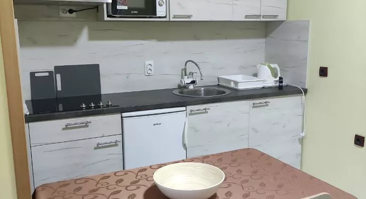 Stan se nalazi na drugom spratu stambene zgrade, ima 32m2, sastoji se iz predsoblja, kuhinje,kupatila, sobe i terase. Zgrada ima gradsko centralno grejanje, kvalitetne opreme kao i stan. Kompletno je namešten novijim stvarima i opremljen svom belom tehnikom i kućnim aparatima.