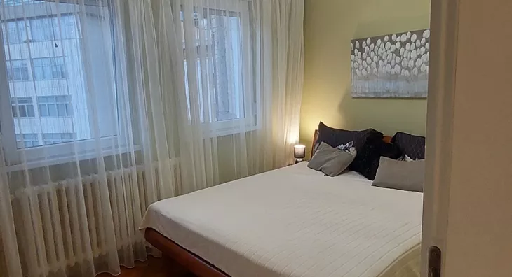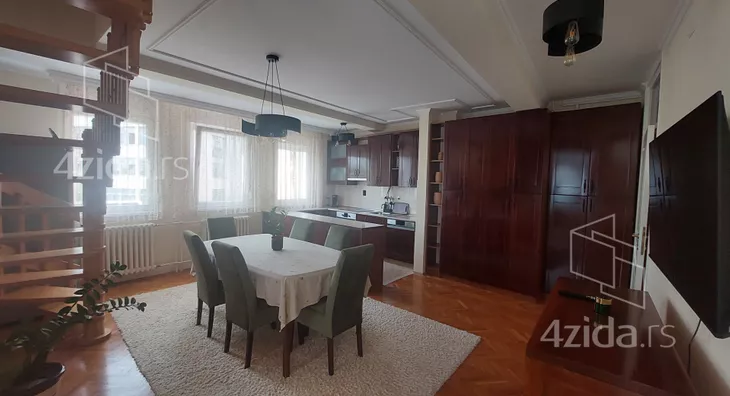 - Opremljenost: Namešteno - internet, TV, klima, veš mašina, kuhinjski elementi, sudo mašina, frižider, zamrzivač, šporet, rerna, ležaj, plakar, ugradni plakar