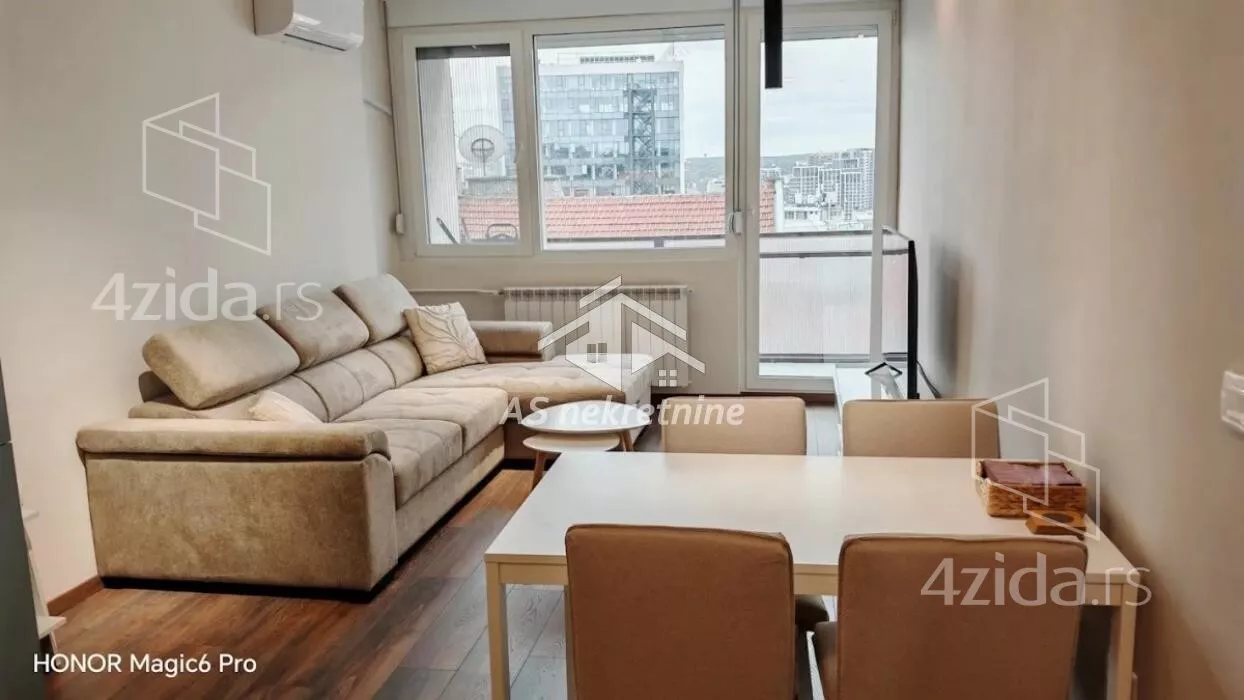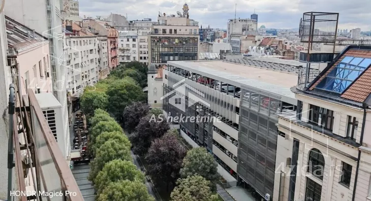 Izdaje se luksuzno renoviran i kompletno opremljen dvosoban stan površine 40 m2, koji se nalazi u pešačkoj zoni, tik uz Knez Mihailovu ulicu. Stan je na 7. spratu zgrade sa dva lifta i ima centralno grejanje.