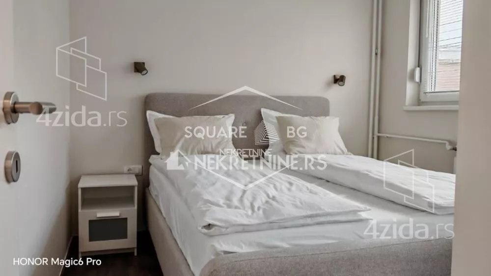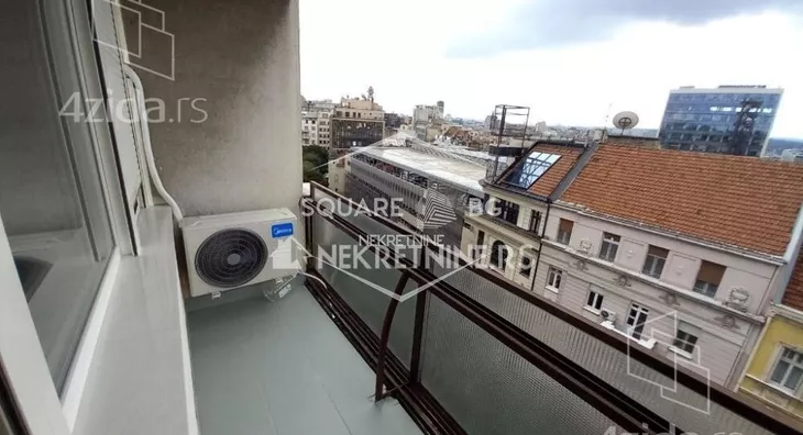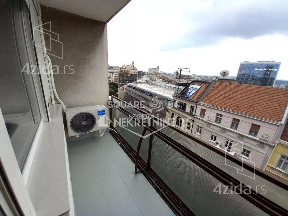 Zgrada se nalazi u pešačkoj zoni u strogom centru Beograda. Zgrada ima 2 lifta. Javne garaže u blizini. Stan se izdaje na duže. Stan je kompletno renoviran, opremljen i namešten (sve novo) krajem 2025. Stan je svetao i komforan za 2 osobe. Stan se sastoji od hodnika, toaleta, dnevne sobe spojene sa kuhinjom i spavaće sobe. Stan se izdaje na duže. Agencijska provizija 50%