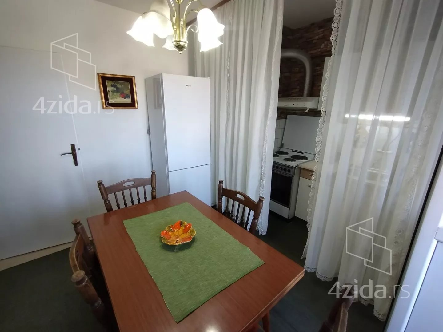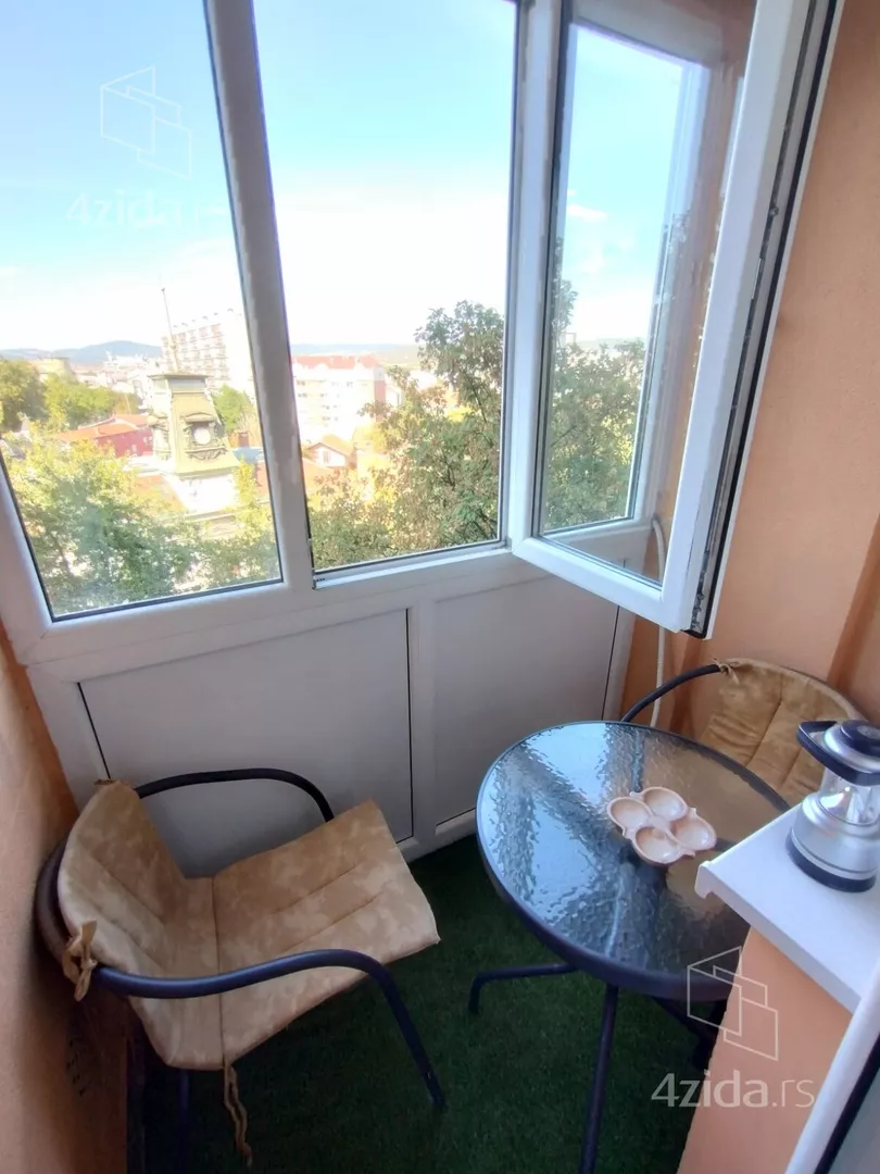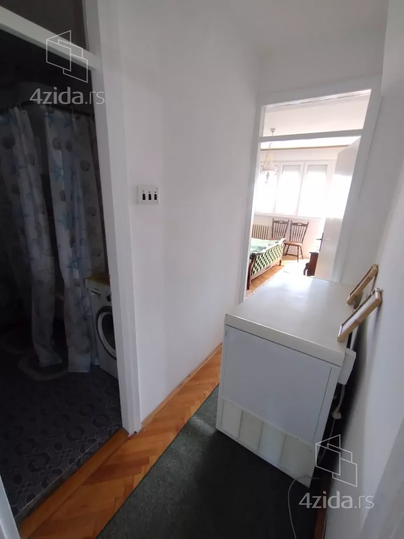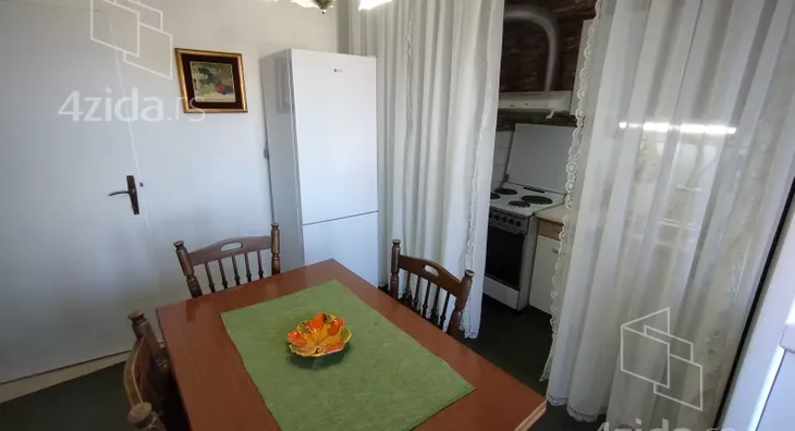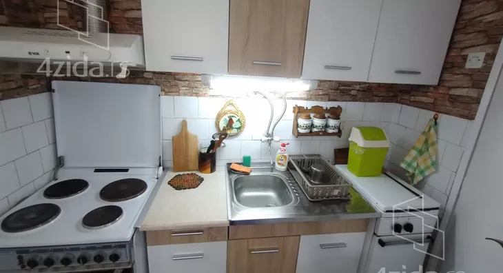 - Opremljenost: Namešteno - TV, klima, veš mašina, kuhinjski elementi, frižider, zamrzivač, šporet, rerna, ležaj, plakar, ugradni plakar