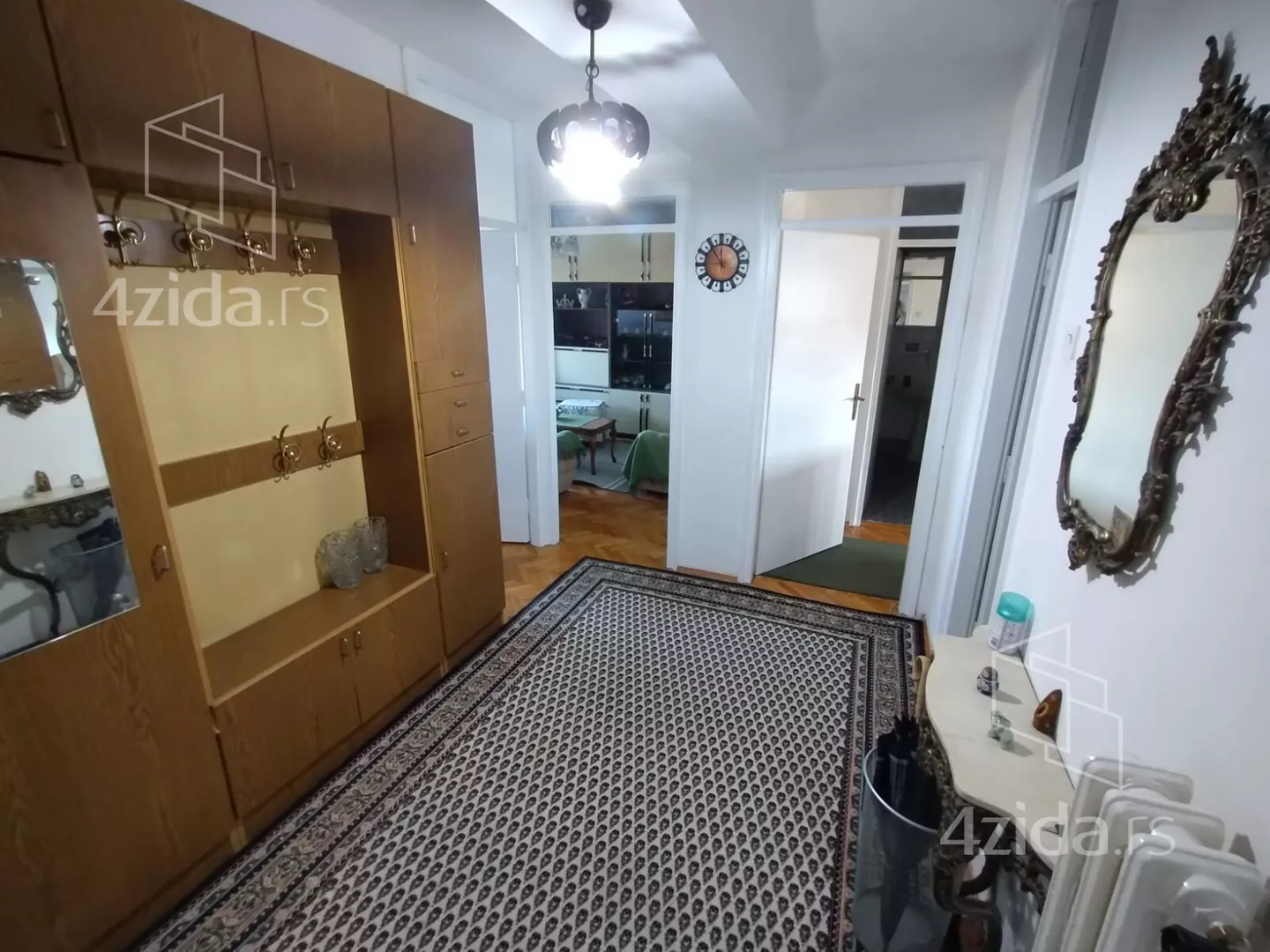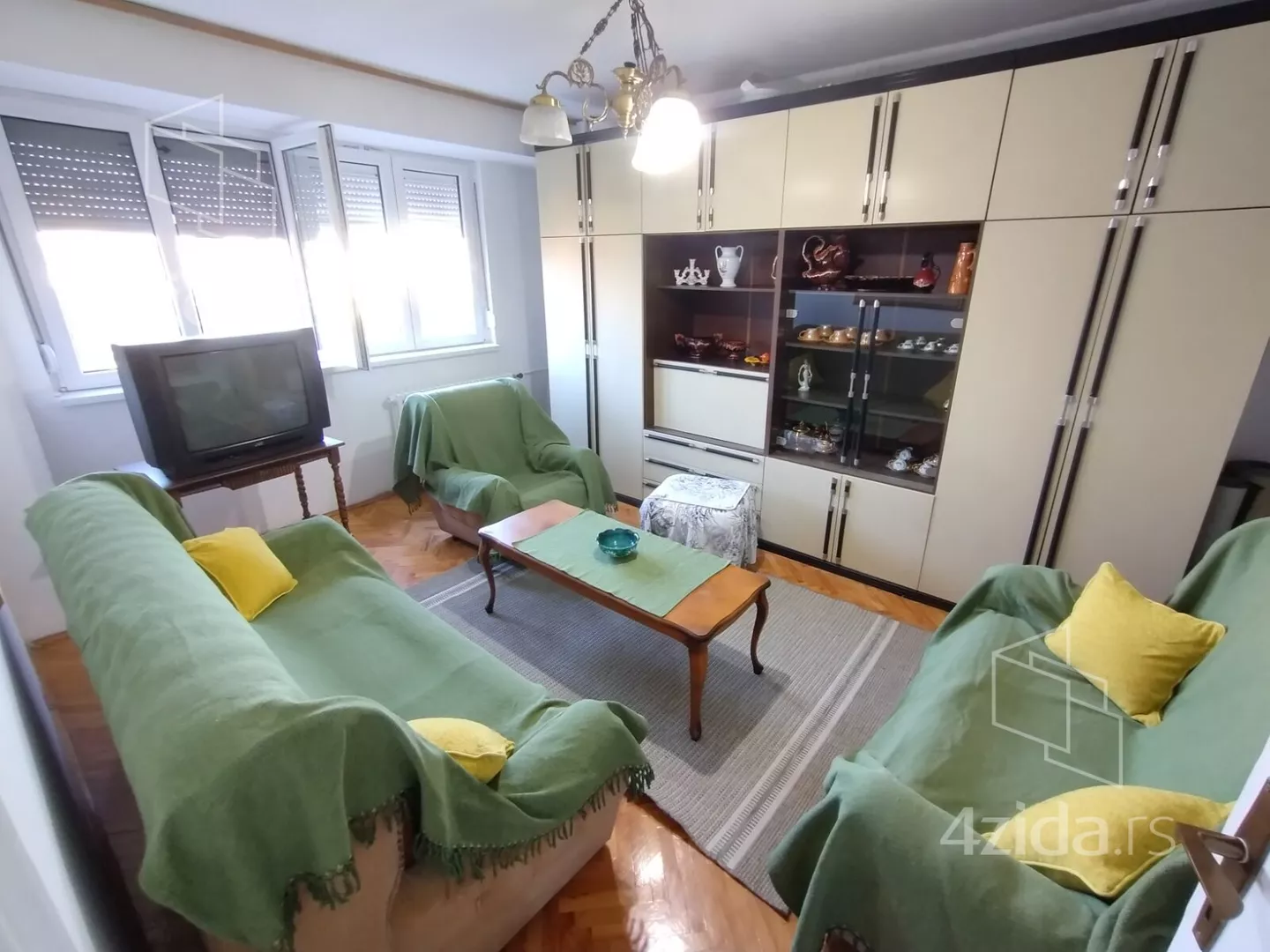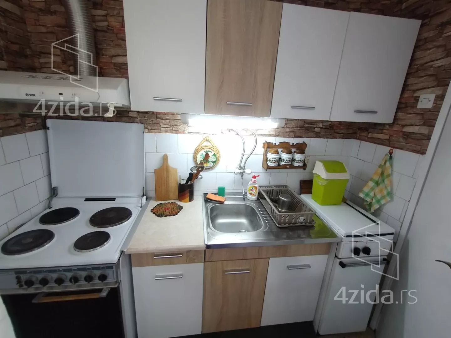 - Opremljenost: Namešteno - TV, klima, veš mašina, kuhinjski elementi, frižider, zamrzivač, šporet, rerna, ležaj, plakar, ugradni plakar