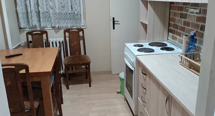 - Opremljenost: Namešteno - internet, TV, klima, veš mašina, kuhinjski elementi, frižider, zamrzivač, šporet, rerna, ležaj, plakar, ugradni plakar