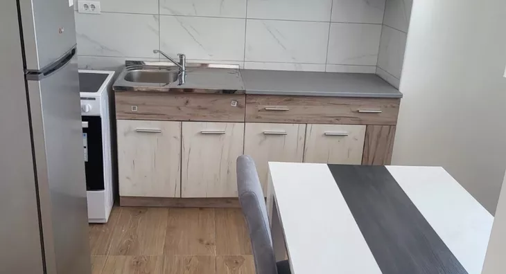 - Opremljenost: Namešteno - internet, TV, klima, veš mašina, kuhinjski elementi, frižider, zamrzivač, mikrotalasna rerna, šporet, rerna, ležaj, plakar, ugradni plakar