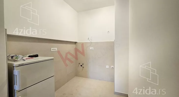 Stambena jedinica je opremljena novom kuhinjom sa električnim aparatima, ugradnim plakarima i veš mašinom u kupatilu.