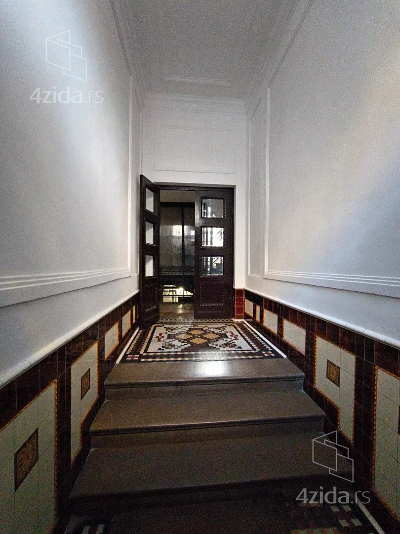 Na samom raskršću ulica Takovska i 27. marta, smeštena je izuzetna, četvoroetažna, predratna salonska zgrada, sa autentičnim liftom i mermernim ulazom, ukrašenim teraco ornamentikom.