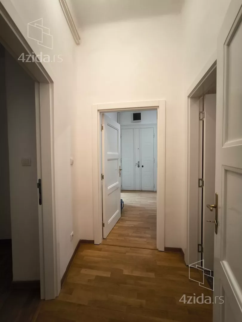 Na raspolaganju je kompletno renoviran stan salonskog tipa, sa visinom plafona od 3,40 m. Dvostrano orijentisan, prozračan i svetao, dovoljno je povučen od gradske vreve.