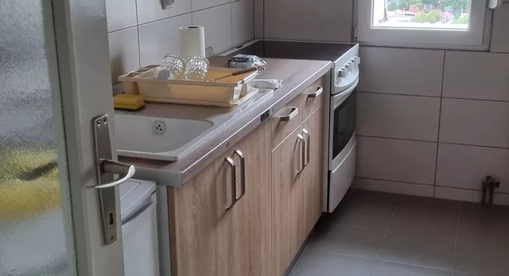 - Opremljenost: Namešteno - internet, TV, klima, veš mašina, kuhinjski elementi, frižider, šporet, rerna, ležaj, plakar, ugradni plakar