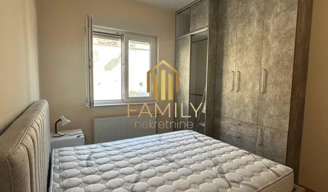 - Opremljenost: Namešteno - internet, TV, klima, veš mašina, kuhinjski elementi, frižider, zamrzivač, šporet, rerna, ležaj, plakar, ugradni plakar