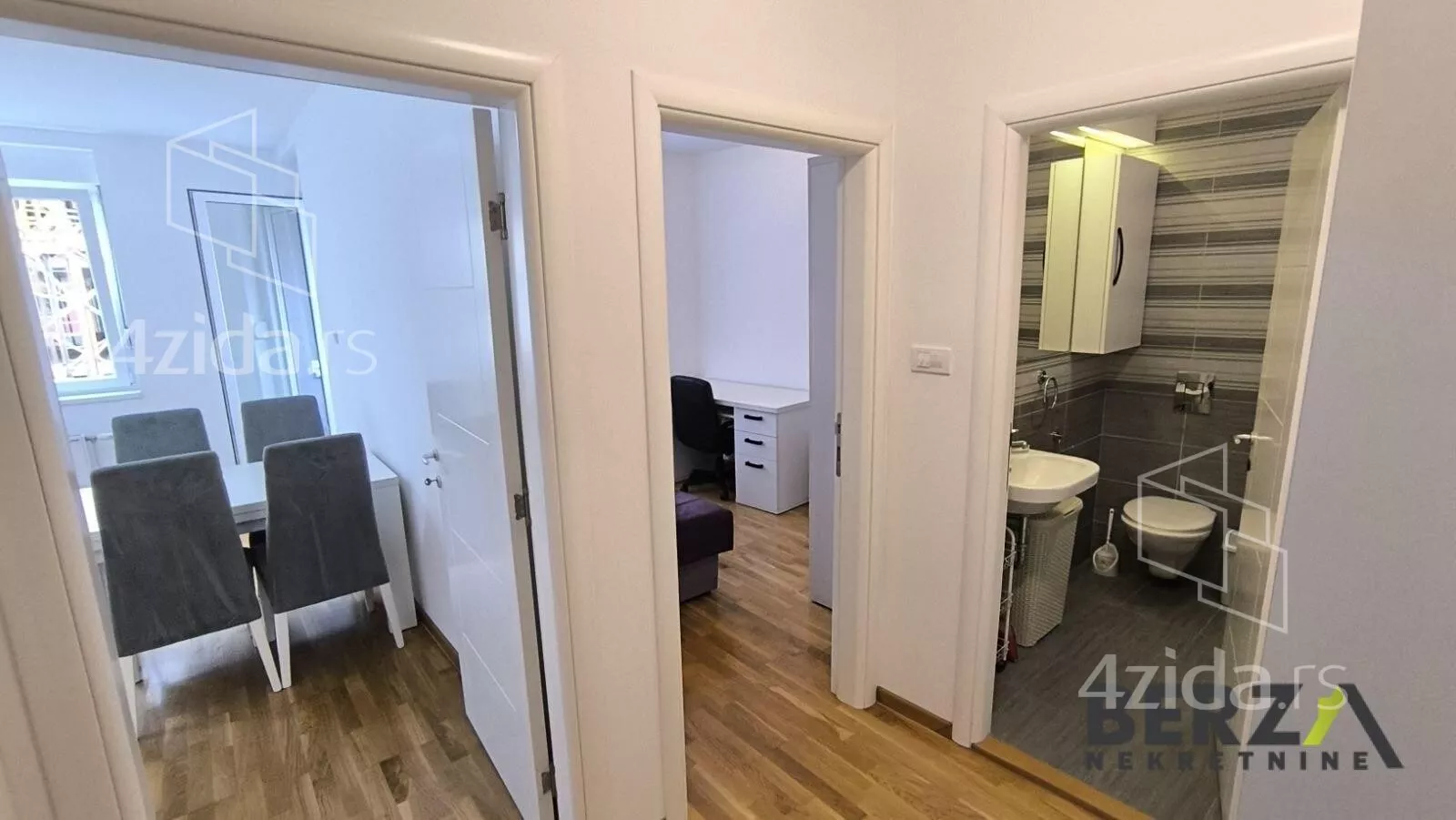 Izdaje se potpuno namešten jednoiposoban stan na 2. spratu zgrade sa liftom na Podbari. Stan se sastoji od prostrane dnevne sobe povezane sa trpezarijom i kuhinjom, odvojenom spavaćom sobom i kupatilom.