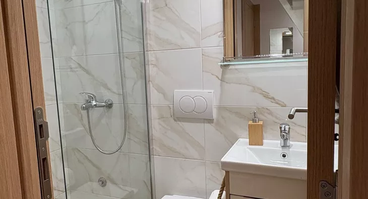 - Opremljenost: Namešteno - internet, TV, klima, veš mašina, kuhinjski elementi, frižider, zamrzivač, mikrotalasna rerna, ugradni plakar