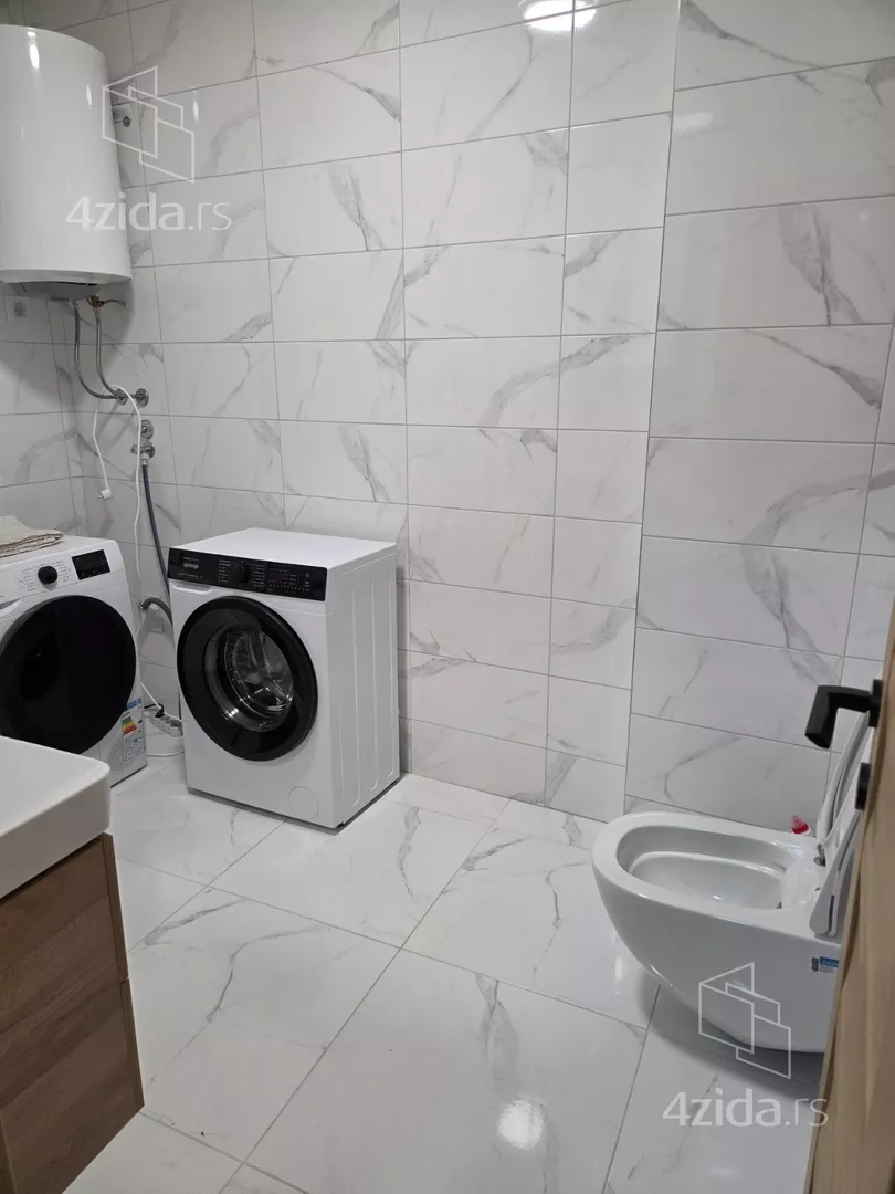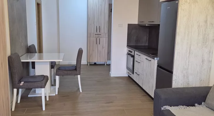 Izdaje se kompletno namešten dvosoban stan 41 kvm na 4.spratu u novoj zgradi sa liftom. Grejanje je gasno. Stan se izdaje na duži vremenski period. Sko je potrebno garazno mesto ono se dodatno naplaćuje 30 evra.