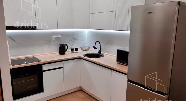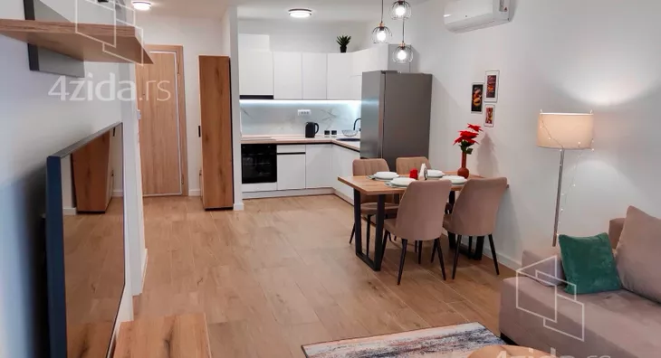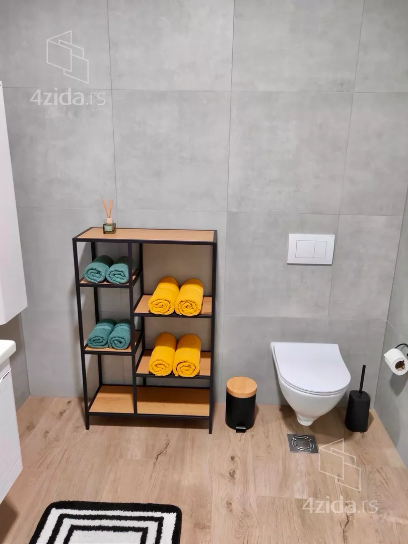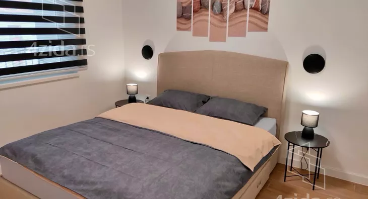 - Opremljenost: Namešteno - internet, TV, klima, veš mašina, kuhinjski elementi, sudo mašina, frižider, zamrzivač, mikrotalasna rerna, šporet, rerna, ležaj, plakar