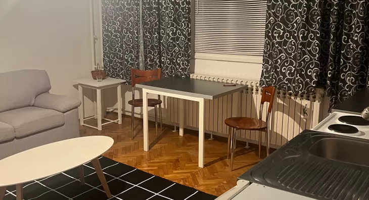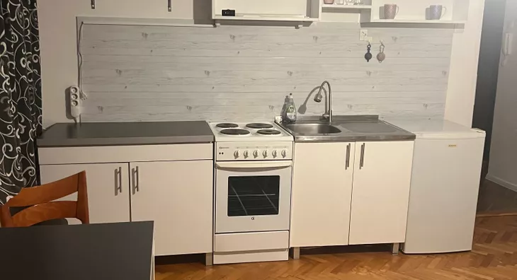 - Opremljenost: Namešteno - internet, TV, klima, veš mašina, kuhinjski elementi, frižider, šporet, rerna, ležaj, plakar, ugradni plakar