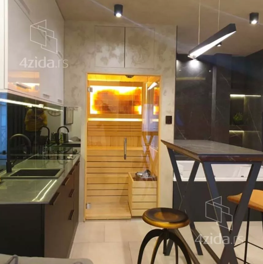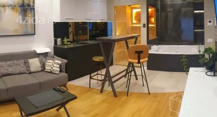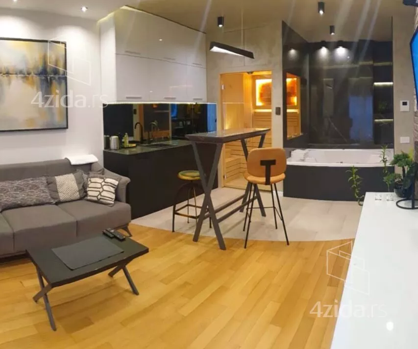 Stan poseduje spavaću sobu, kupatilo, đakuzi, saunu, prostranu dnevnu sobu, odvojenu kuhinjom sa trpezarijom i prelepu terasu za svakodnevno uživanje.