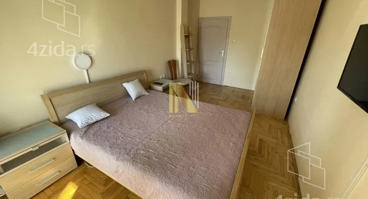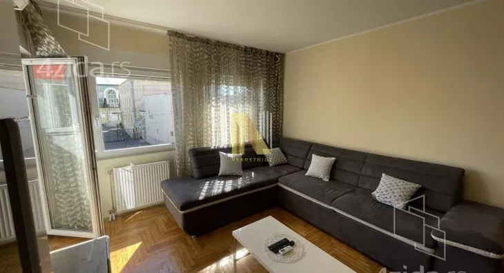 Izdaje se renoviran dvosoban stan na odličnoj lokaciji, nalazi se na prvom spratu zgrade koja ima lift. Ovaj odličan stan se sastoji od velike dnevne sobe koja je spojena sa kuhinjom i trpezarijom, a ima i izlaz na zastakljenu terasu, takođe stan ima i prostranu spavaću sobu sa bračnim krevetom.