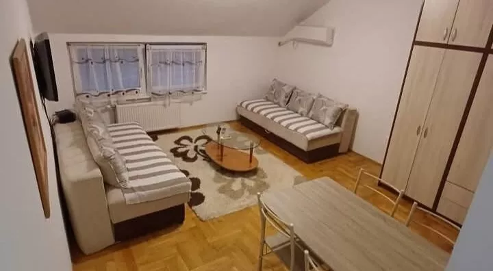 Izdaje se kompletno namešten jednosoban stan na 3. spratu zgrade sa liftom, na Rotkvariji. Stan je u potpunosti opremljen novijim nameštajem, kao i kuhinja koja se ne vidi na slikama.