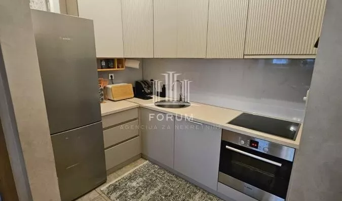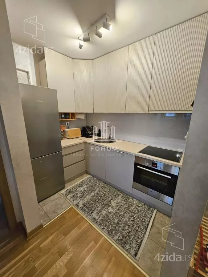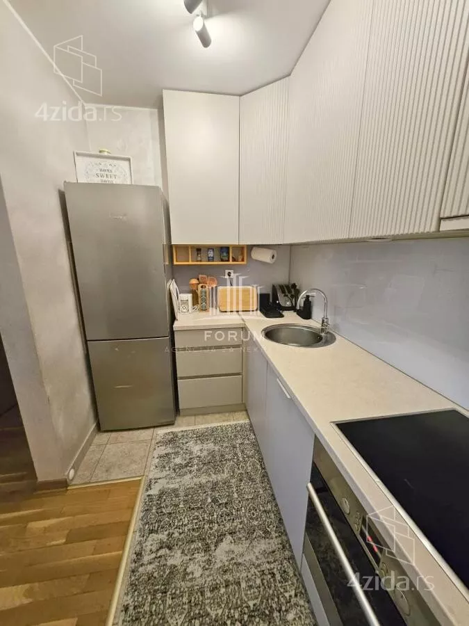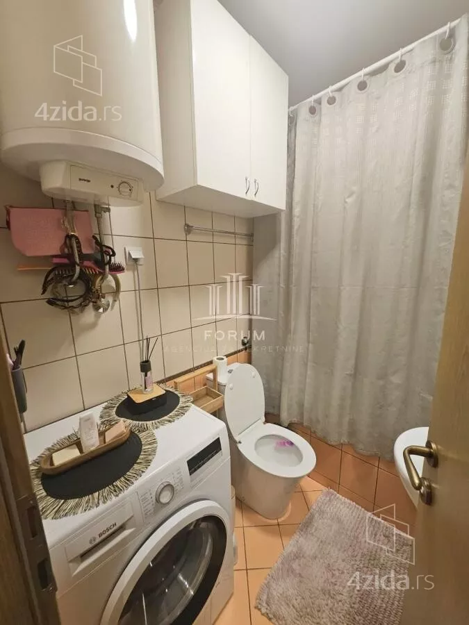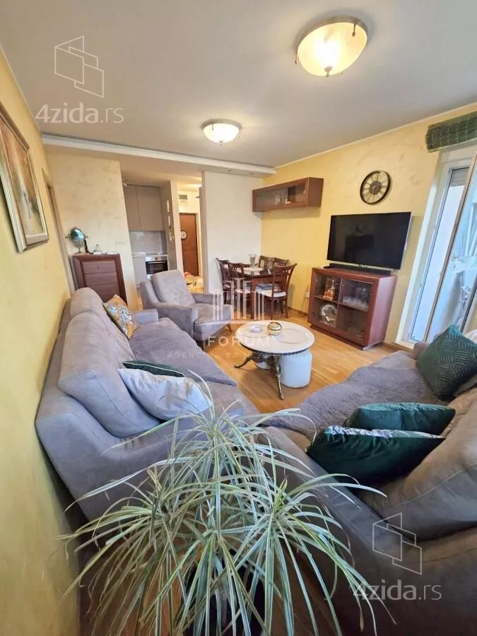 - Opremljenost: Namešteno - internet, interfon, TV, klima, veš mašina, sudo mašina, frižider, rerna, ležaj, plakar, kanalizacija