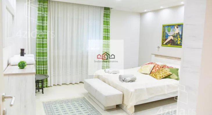 - Opremljenost: Namešteno - TV, klima, veš mašina, frižider, rerna, ležaj, plakar