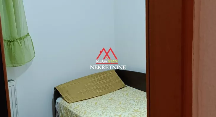 - Opremljenost: Namešteno - TV, klima, veš mašina, kuhinjski elementi, frižider, šporet, rerna, ležaj, plakar, ugradni plakar, kancelarijski nameštaj