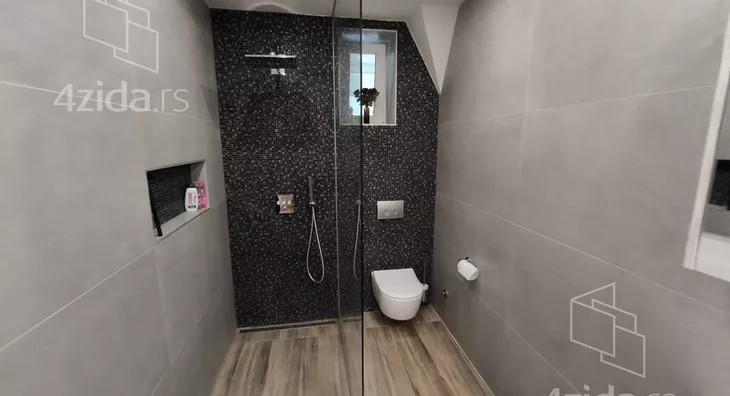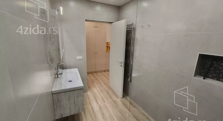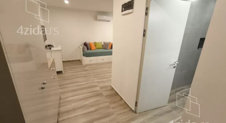 Struktura stana: antre, dnevna soba sa modernom kuhinjom opremljenom Boschovom belom tehnikom, spavaća soba sa plakarima, kupatilo sa mašinom za pranje i sušenje LG, inverter klima, ugrađen sef, podno grejanje, blindirana vrata, interfon, internet.