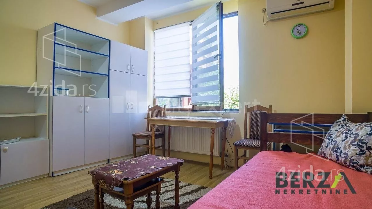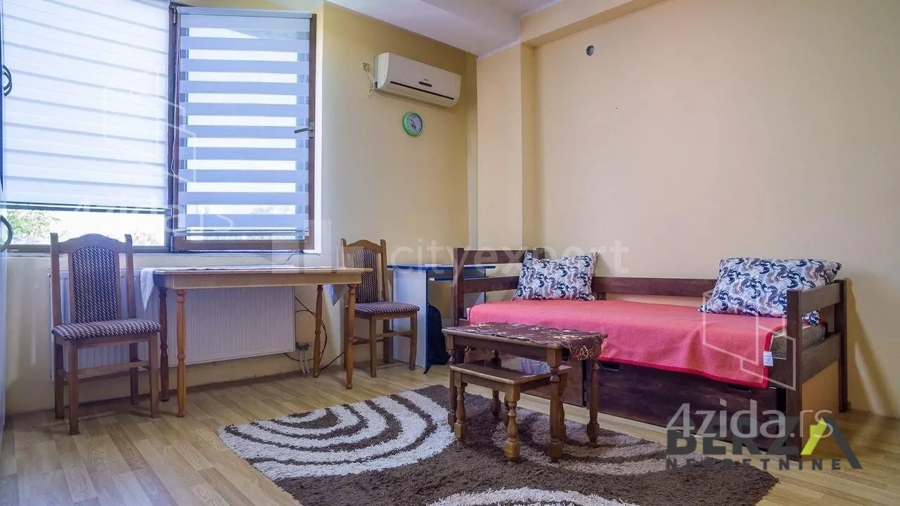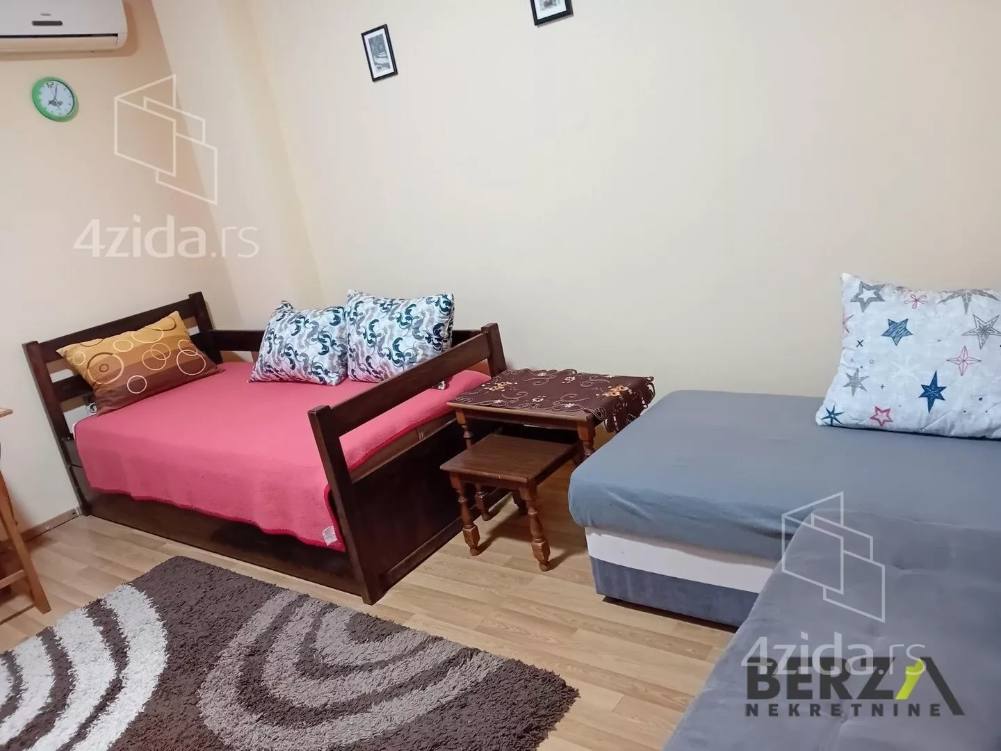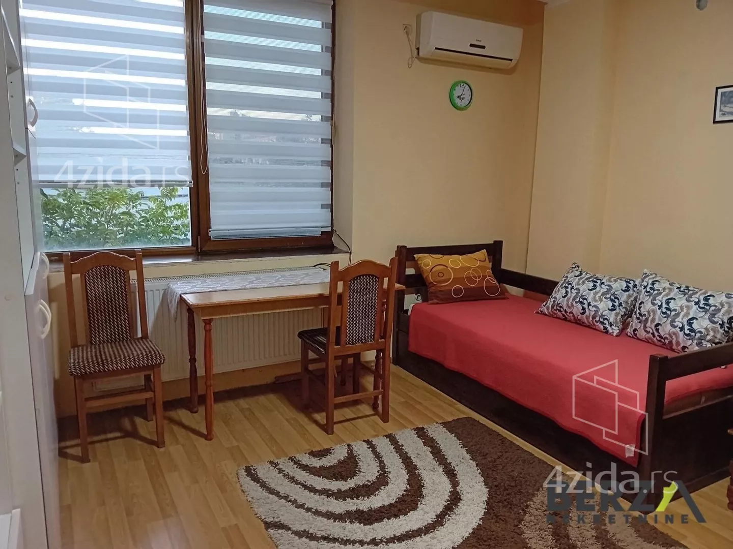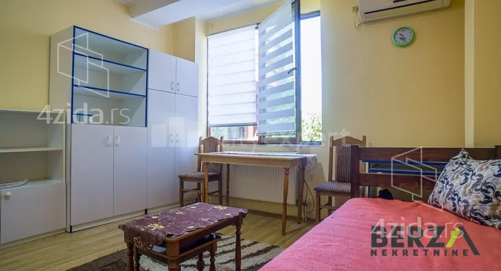 Izdaje se nameštena garsonjera (27m2) na prvom spratu na Futoškom putu. Prostorija ima ugaonu garnituru na razvlačenje i poseban ležaj. Opremljena je klimom, odvojenom kuhinjom i velikim kupatilom. Nalazi se na odlicnoj lokaciji, u blizini autobuskih stanica, pijace i velikog marketa. Režije su male, grejanje se plaća samo u sezoni. Stan je useljiv odmah. Izdaje se na duži period. Potreban depozit u visini jedne mesečne zakupnine.