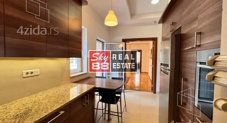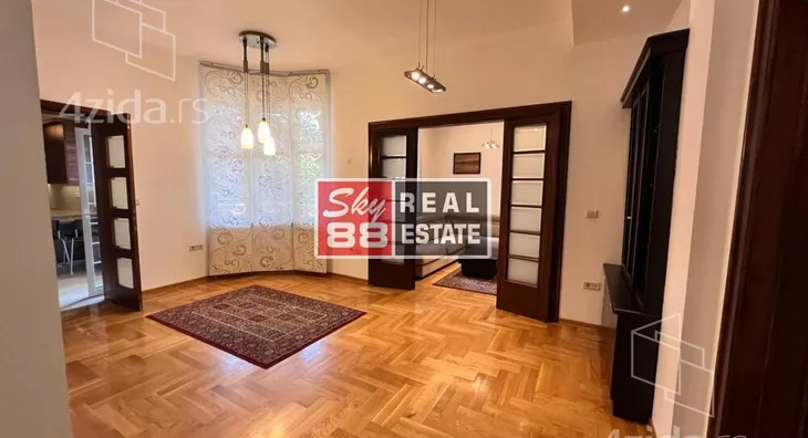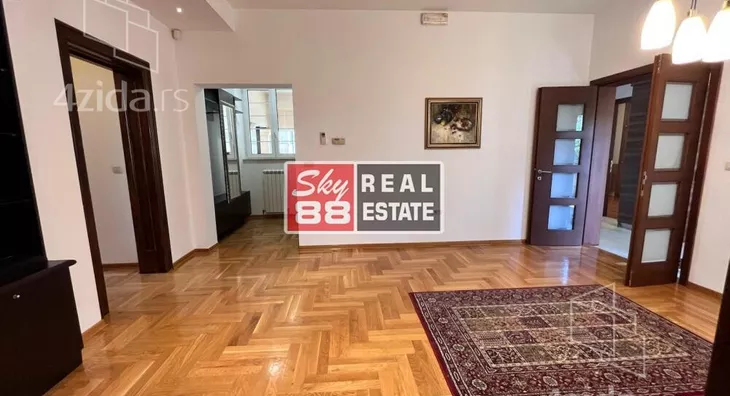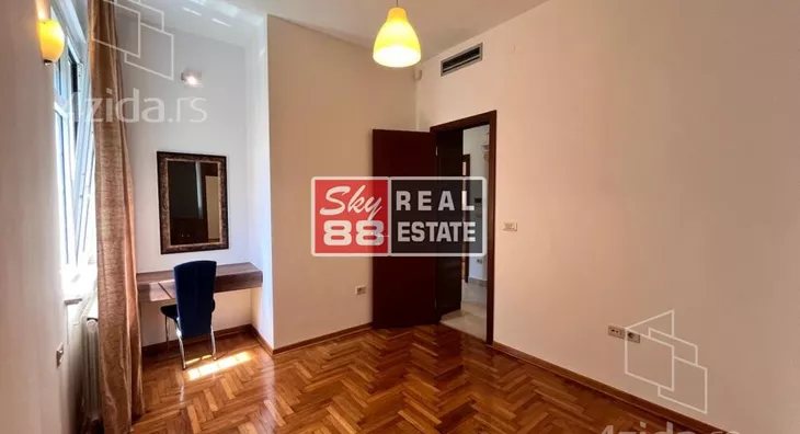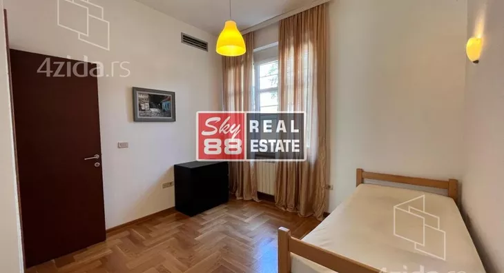4,0 Savski venac , Senjak , vrhunska lokacija , blizina Francuske skole , 130m2 , Vpr / 1 , eg-gas plus toplotna pumpa , luksuzan stan , kompletno opremljen , orijentisan istok-zapad , svetao , visina plafona 3,2m , Hrastov parket , Alu stolarija , motorne roletne, Italijanska keramika , sanitarije Hans-Grohe i Geberit ,garaza 24m2 , dvoriste od 400m2 na koriscenje, u polusuterenu laundry i teretana, alarm, video nadzor, izdaje se namesten ili prazan, minimalan period zakupa dve godine.U ceni je odrzavanje dvorista. Renta: 2800 Evra mesecno plus depozit Struktura : ulazni antre , dnevna soba sa trpezarijom i salonom i izlazom na terasu povrsine 15m2 , kuhinja, tri spavace sobe , dva kupatila Agencijska provizija 50%