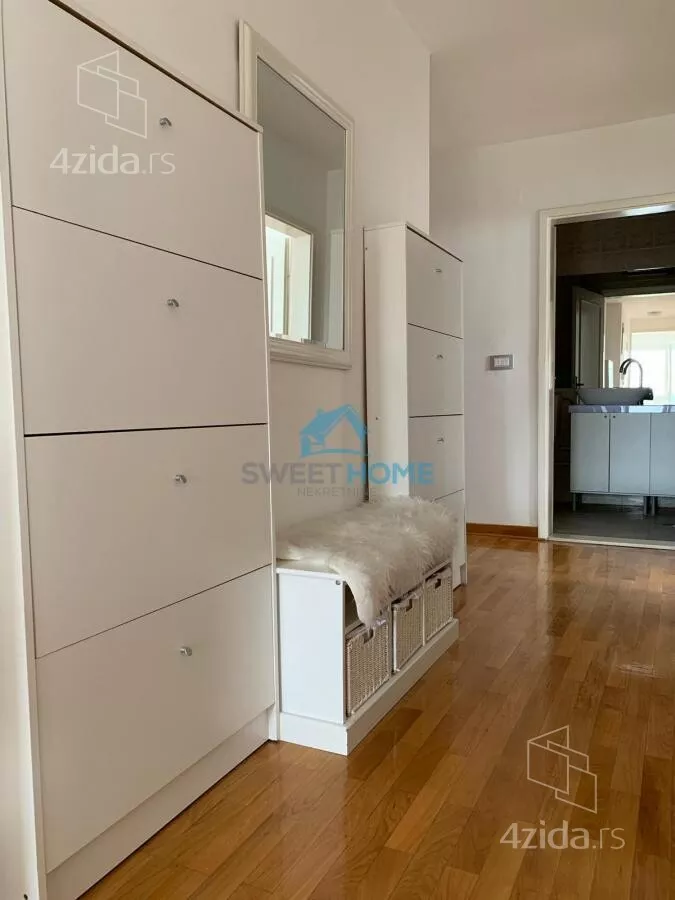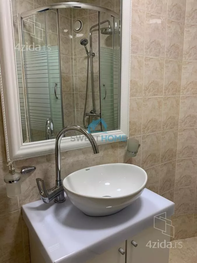 - Opremljenost: Namešteno - internet, interfon, TV, klima, veš mašina, sudo mašina, frižider, rerna, ležaj, plakar